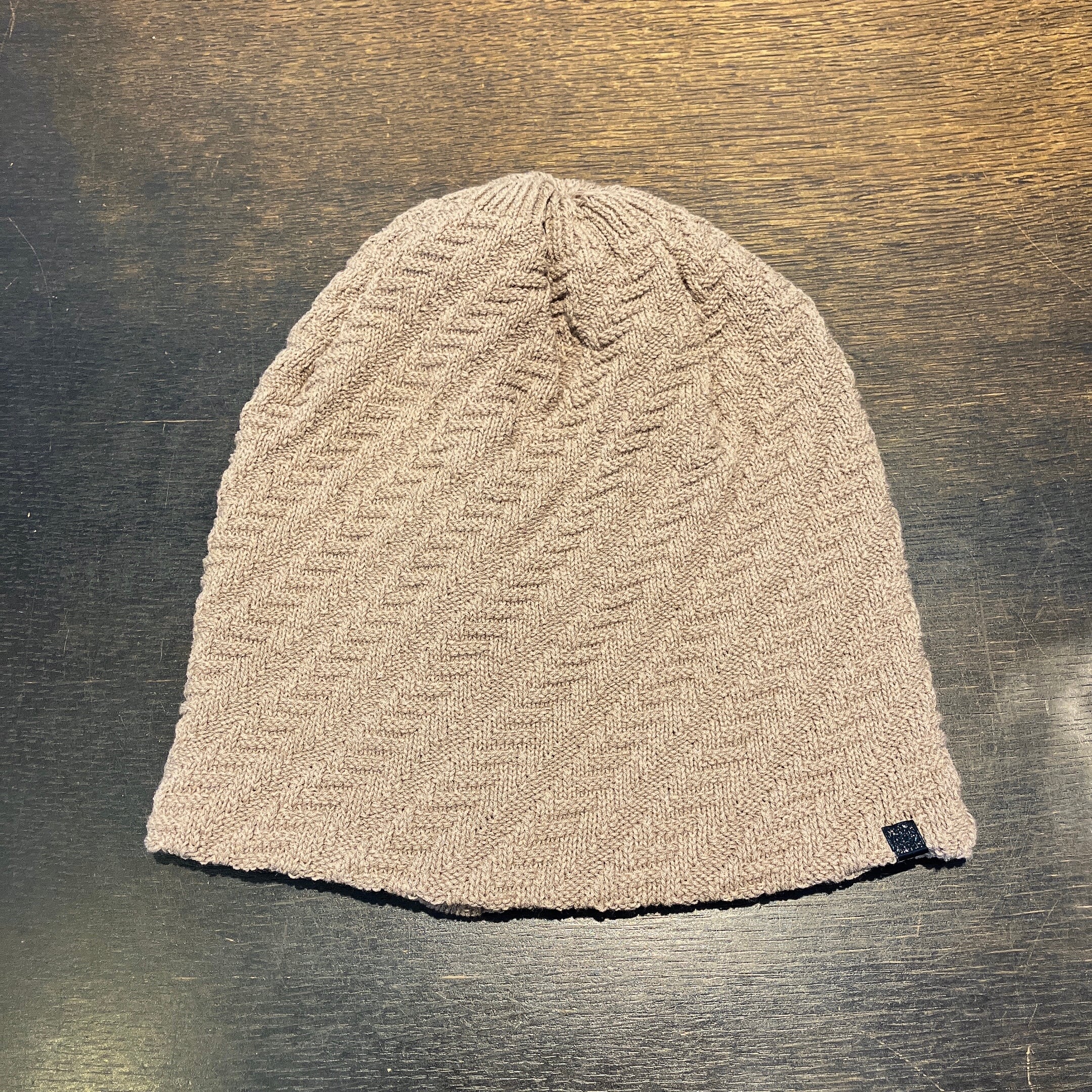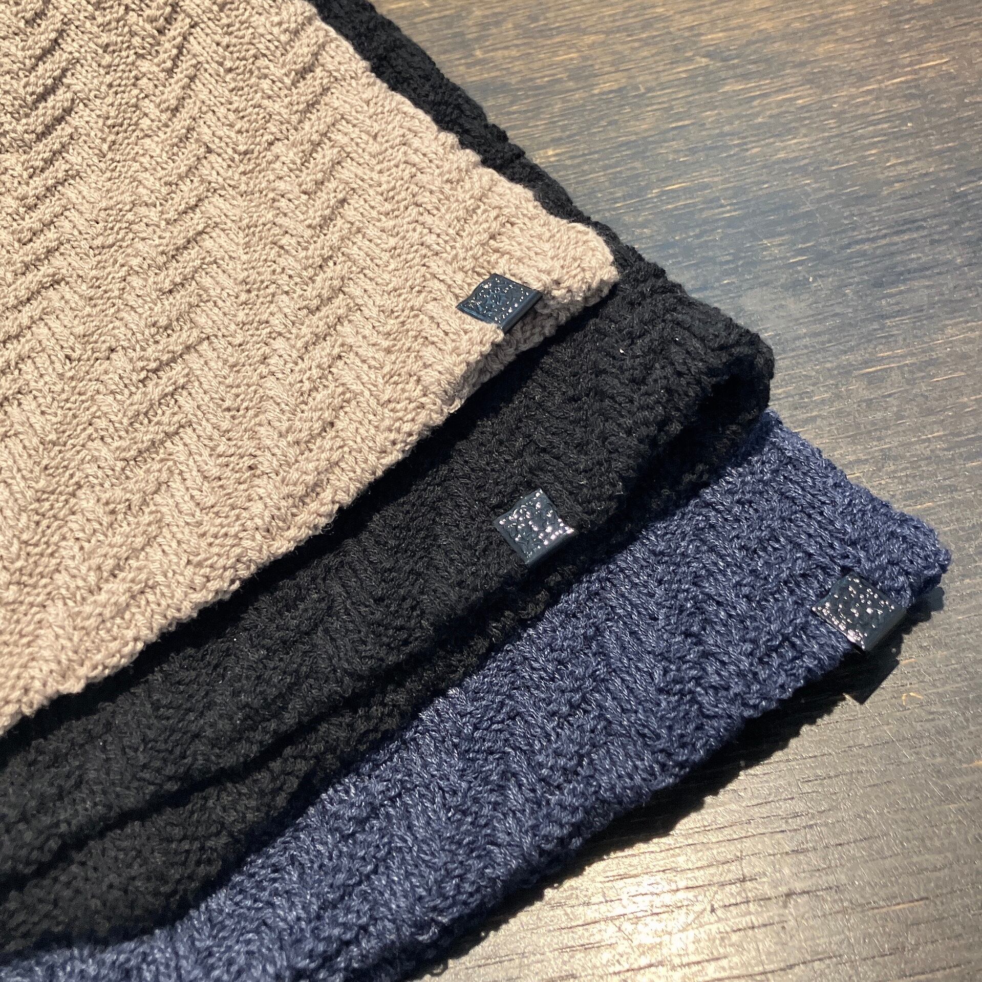 ツイル柄のような凹凸感のある編み地が特徴のデザイン。折り返してダブルにしても◎。