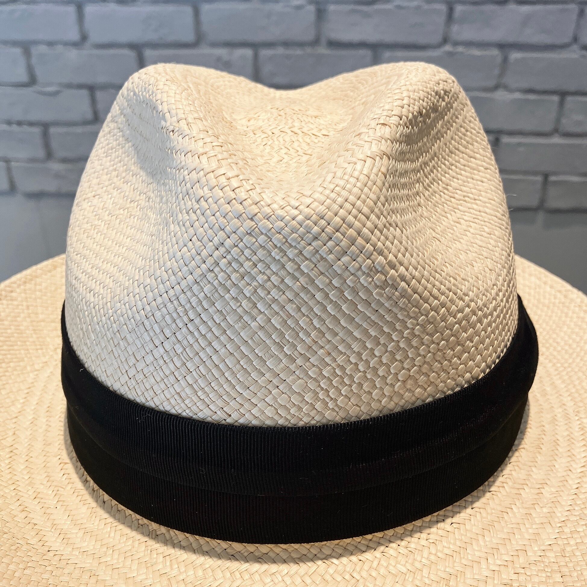 エクアドル産本パナマの石目編み帽体を使用。ツバの一部分に網代編みで切り替えがあります。