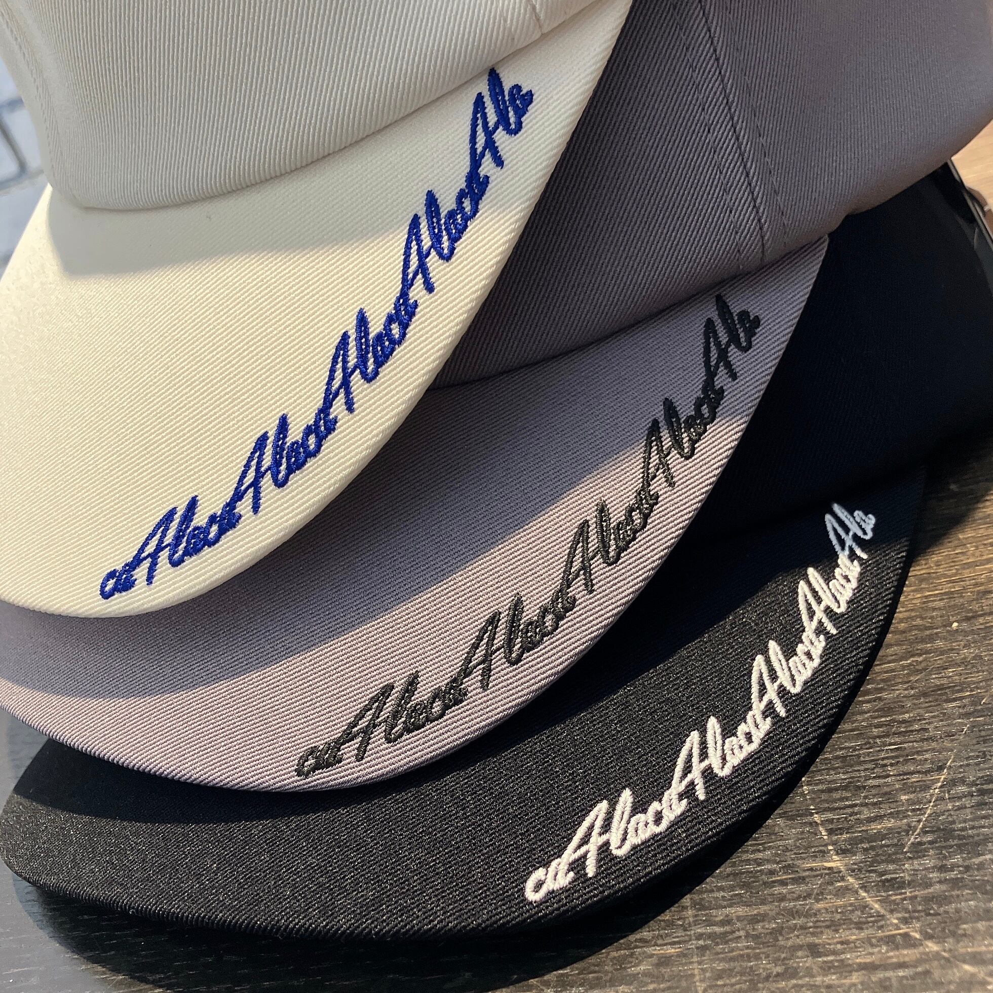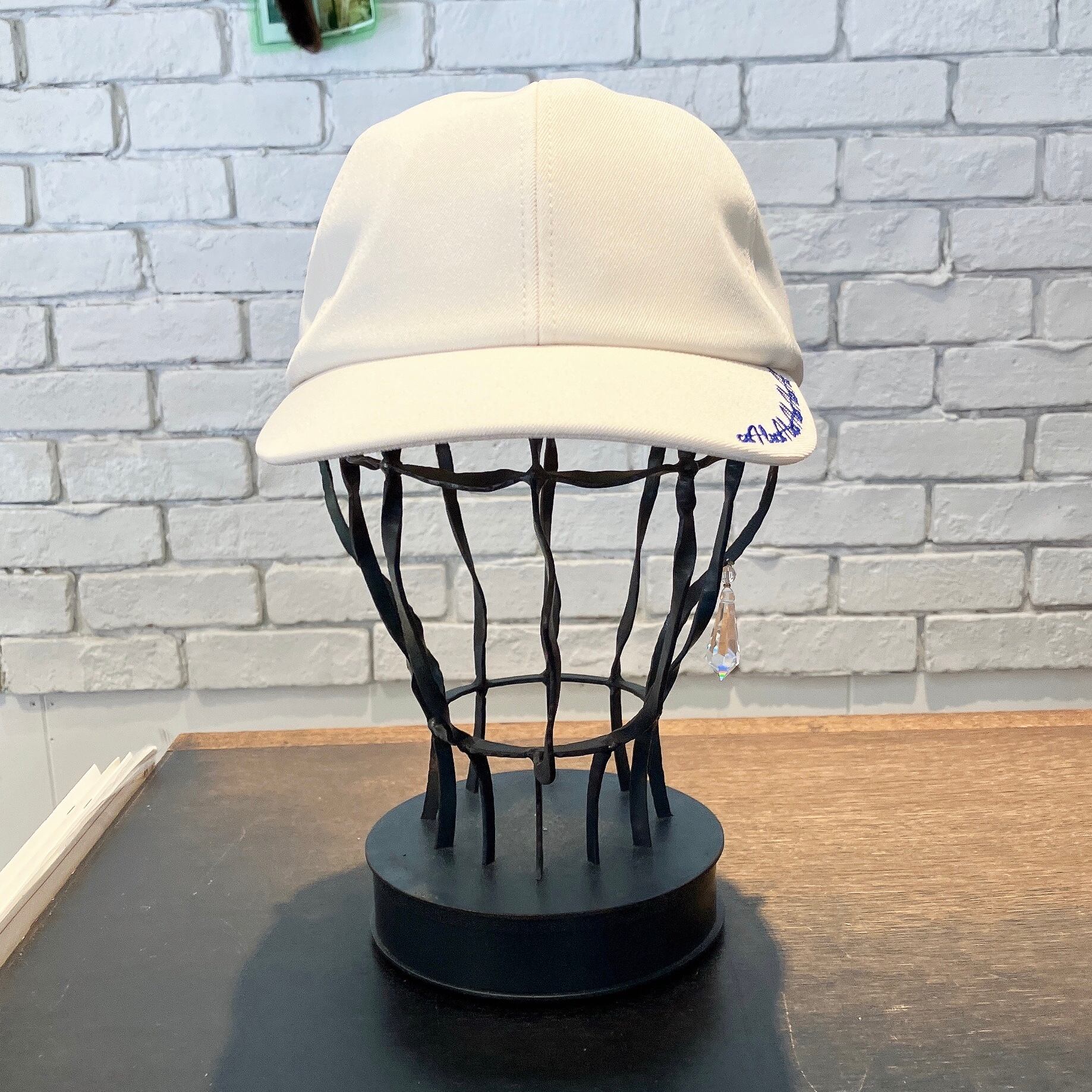 ツバに刺繍を施したベースボールキャップ。