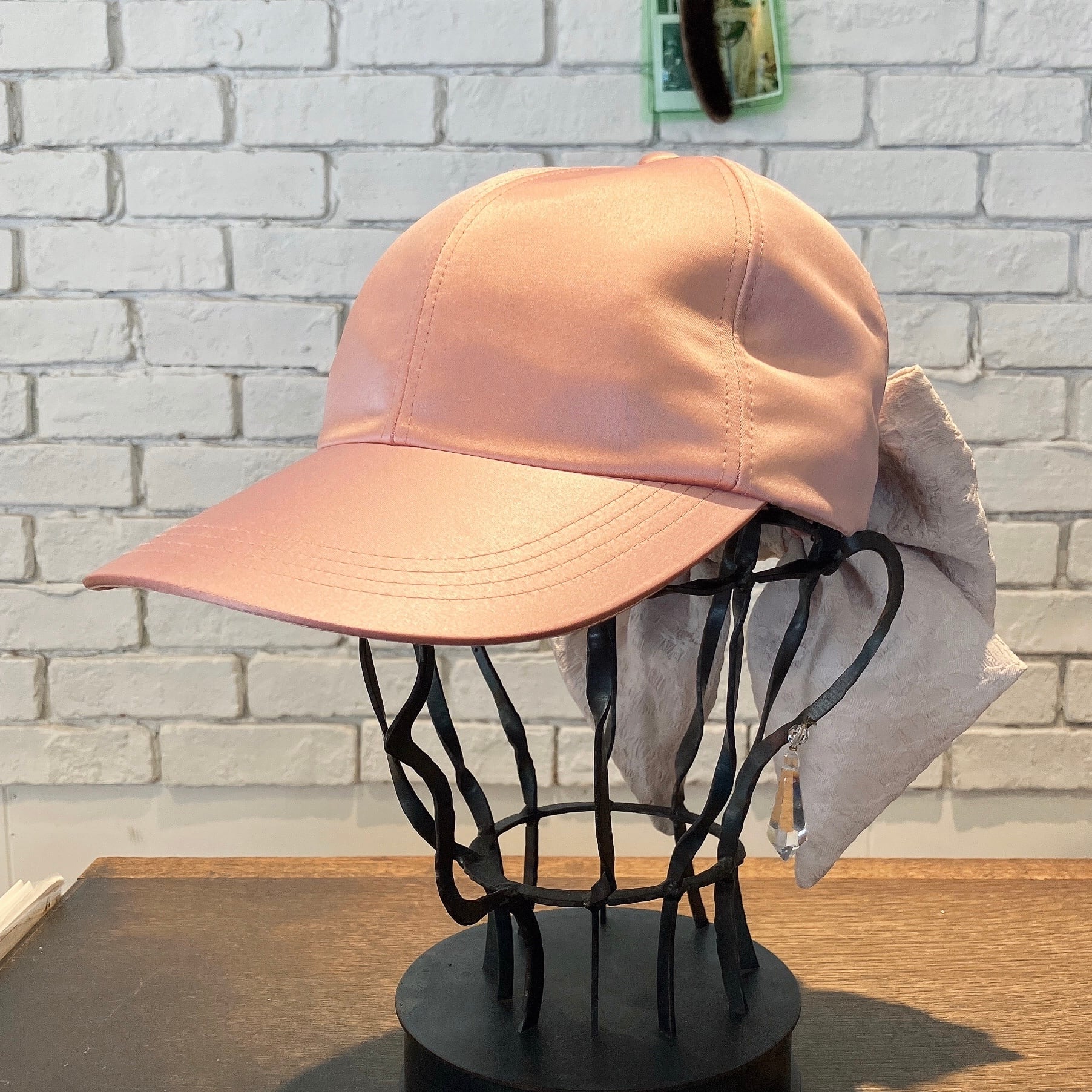 大きなリボンを飾ったベースボールキャップ。