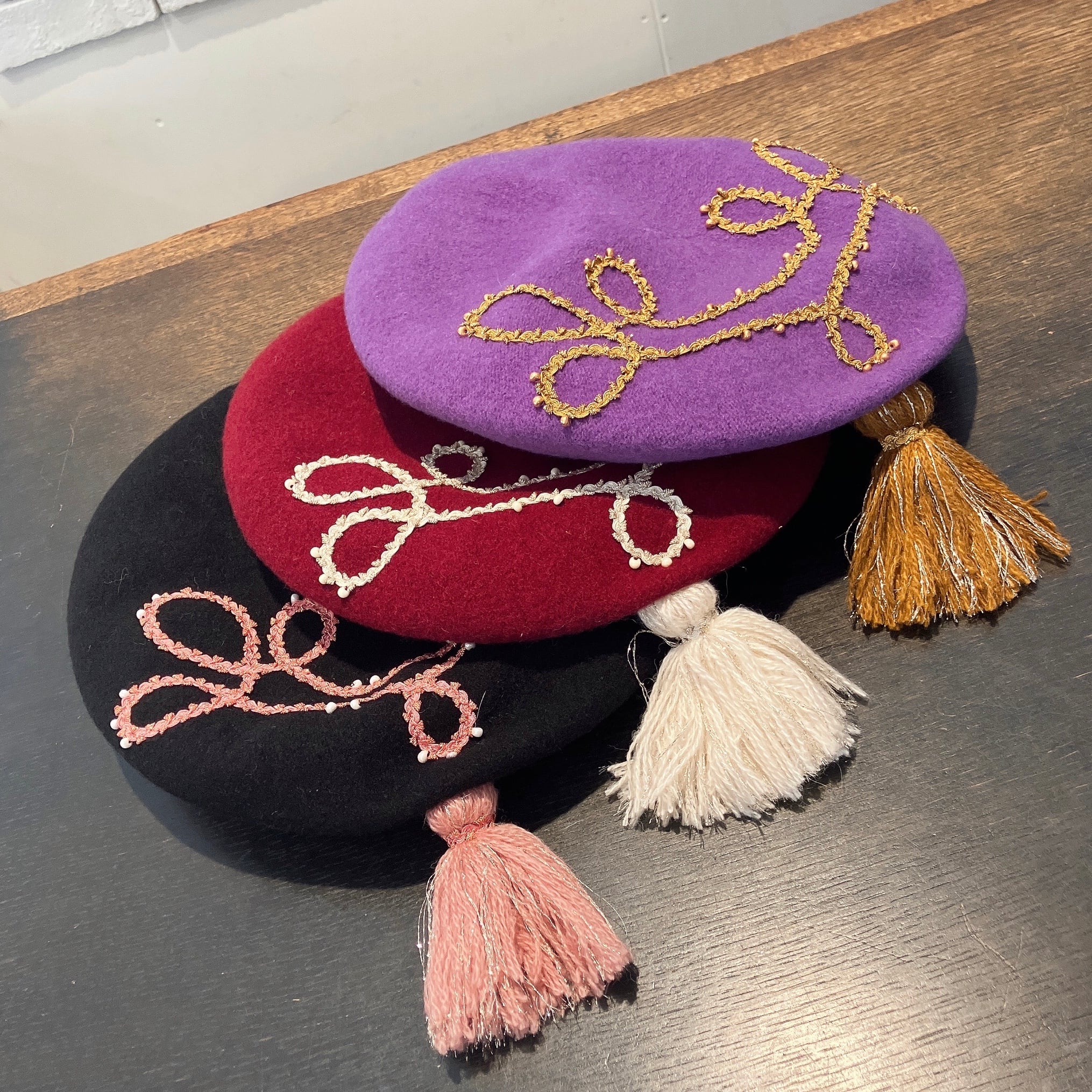 美しい配色のベレー。
