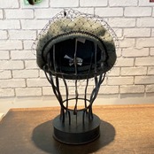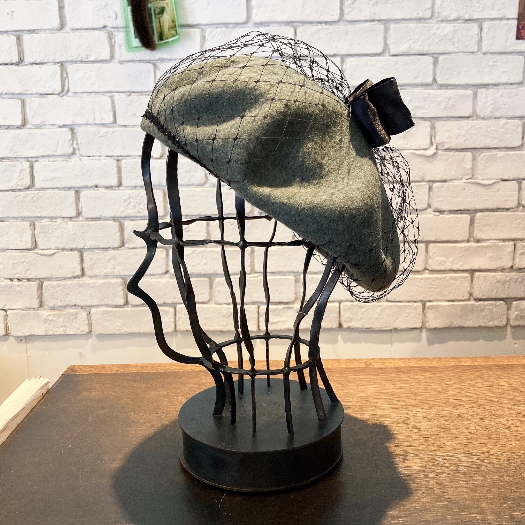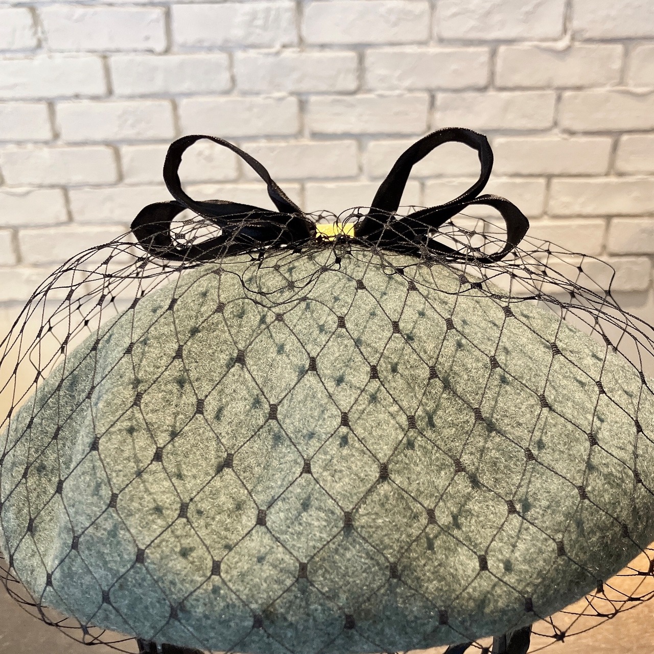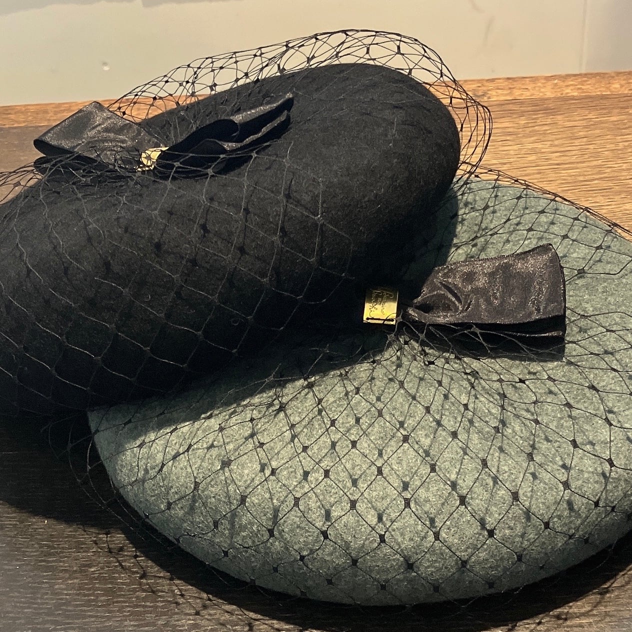 普段使いしやすい小ぶりなベレーにネットチュールを上下にかけ、真ん中でリボンで纏めたようなデザインです。オリジナルのブランドロゴプレートがポイント。
