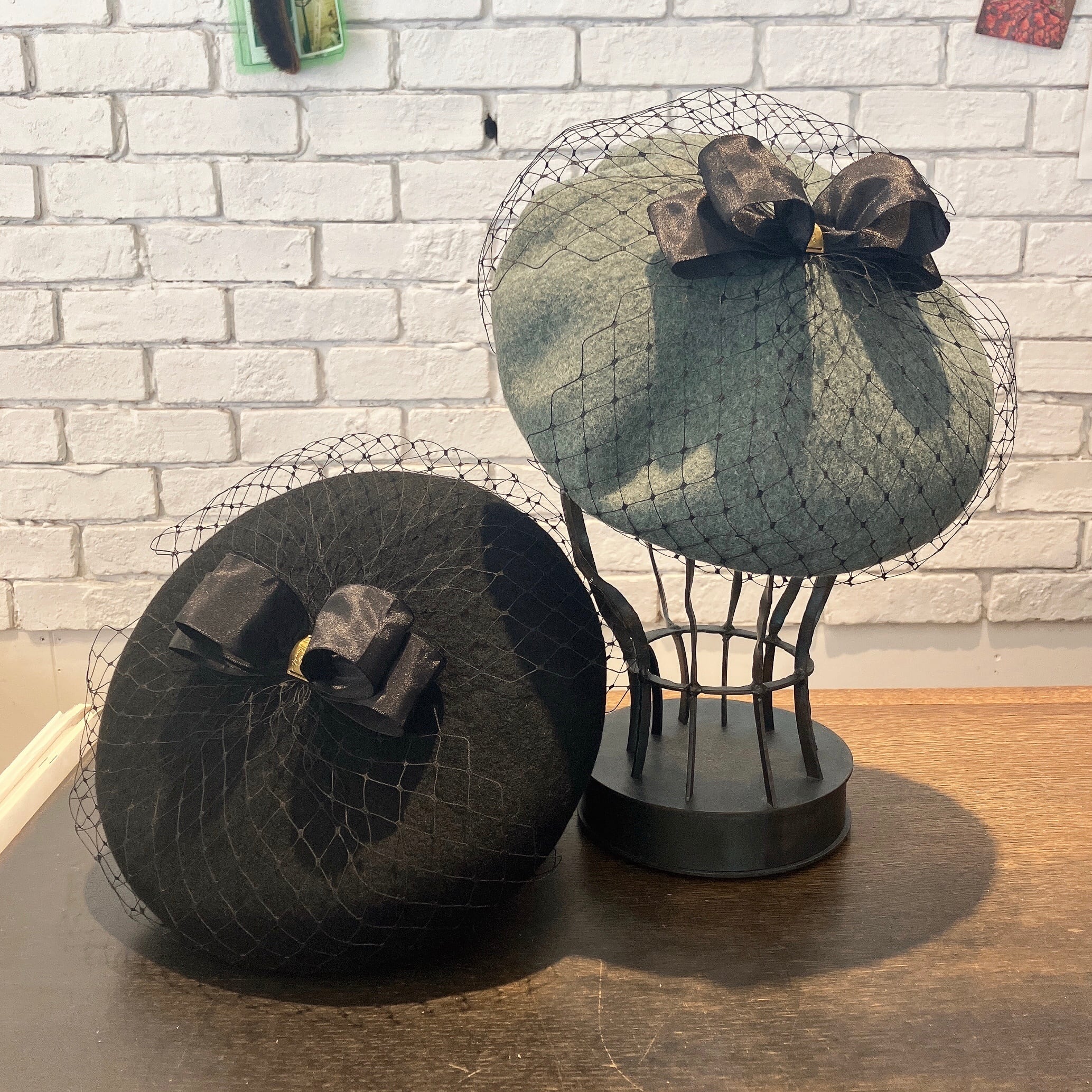 厚めの上質なウールフェルト生地で形を整えやすくとても綺麗なシルエットに決まります。ふんわり立体的なネットチュールが程良い存在感を演出。リボンは両際にワイヤーが通っているので、膨らませたり寝かせたりお好みでアレンジをお楽しみいただけます。