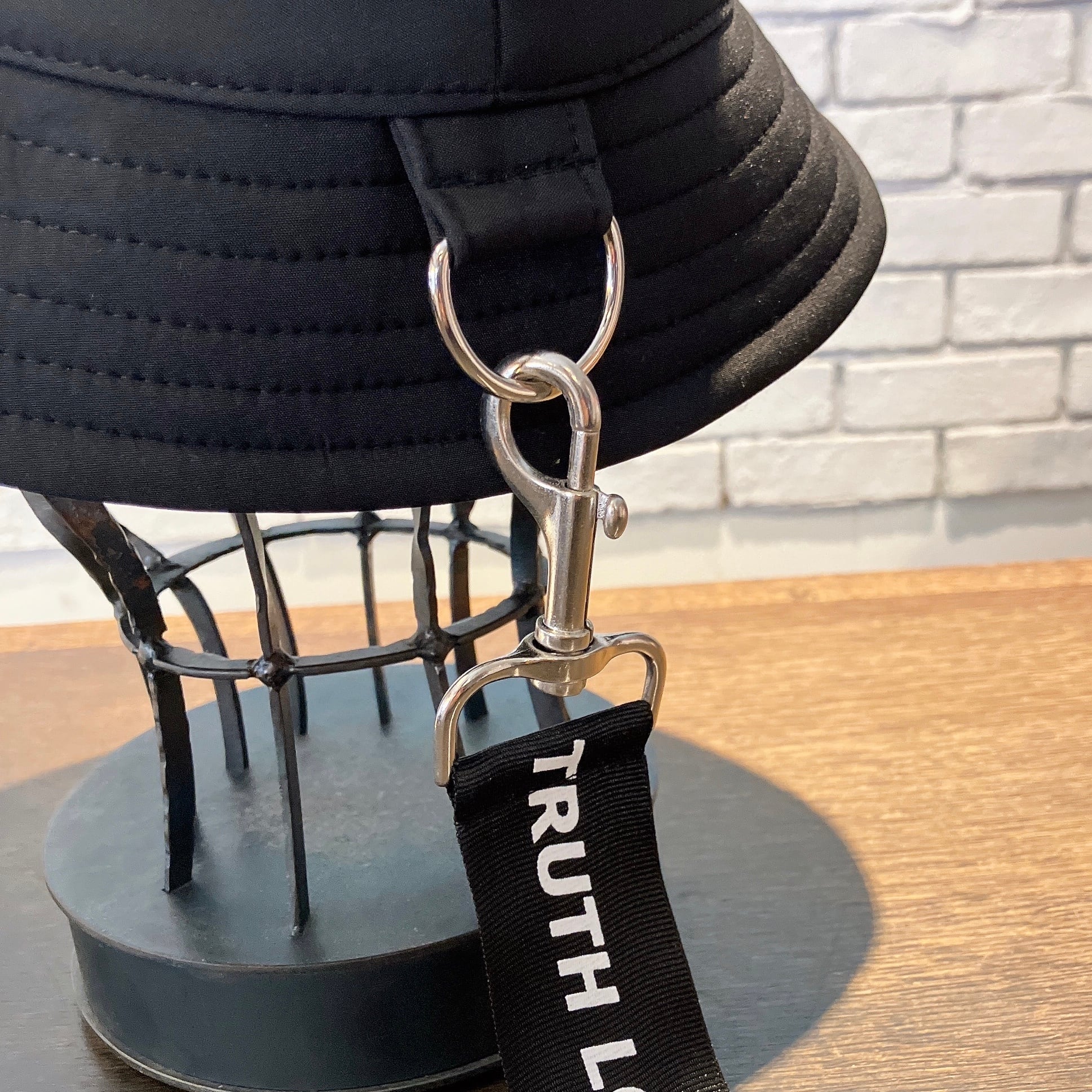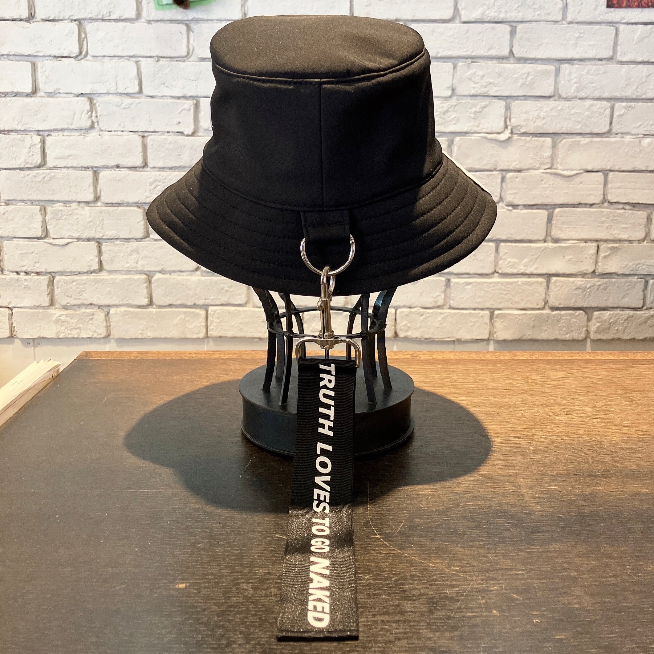 バックに垂れるリボンストラップが特徴的なバケットハット。