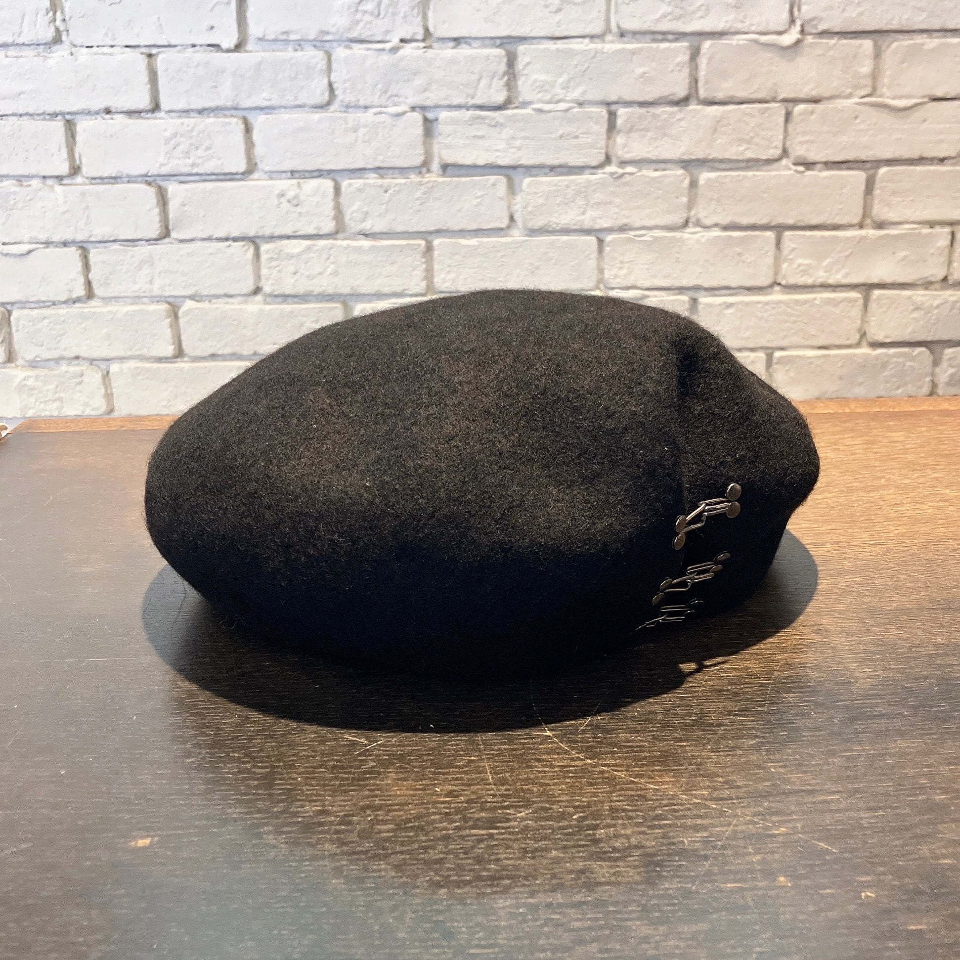 シンプルなベレー帽に3連フックを飾ったCA4LAロングセラーアイテム。フックを留めた時に生まれるタックがポイント。全部外したり一番下だけ外してみたりと、留め方ひとつで違った印象に。
