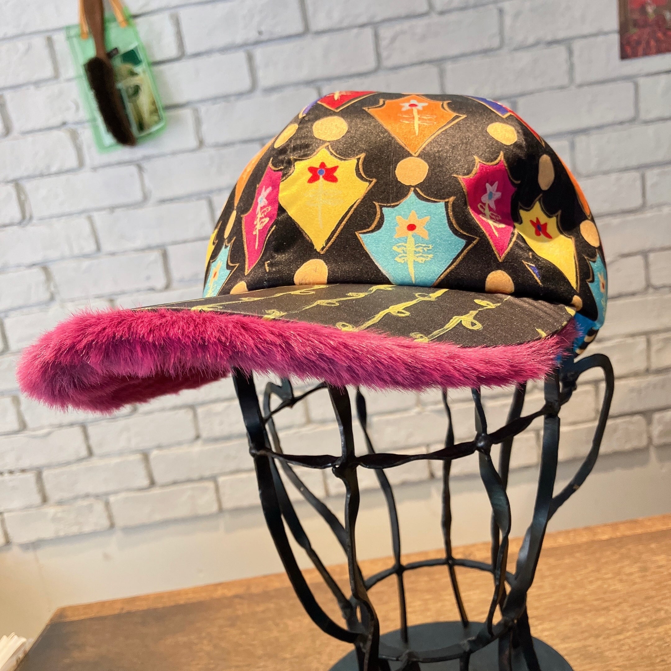 ほぼ原色に近いとてもカラフルな帽子ですが、上品な艶感のあるしっかりした生地が使用されているため玩具っぽさや幼さは無し。