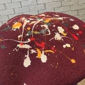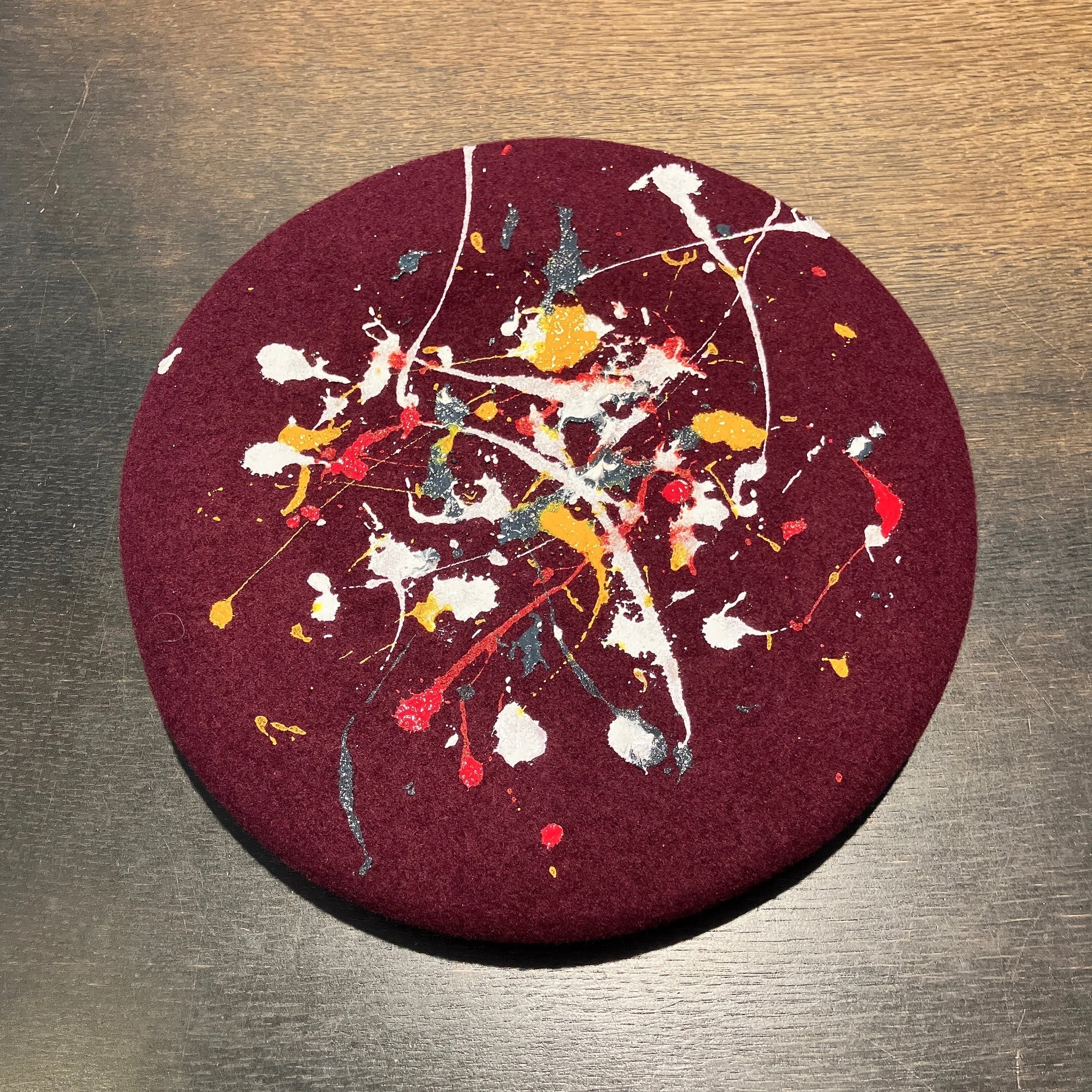 天井部分にアクションペインティングをモチーフにしたプリント加工を施し、アクセントをプラス。サイドのメッセージタグもポイントです。