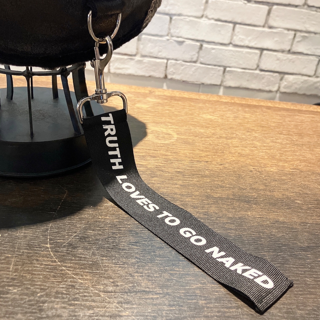 両サイドにそれぞれブランドネームとメッセージが書かれた白いタグをあしらいアクセントに。