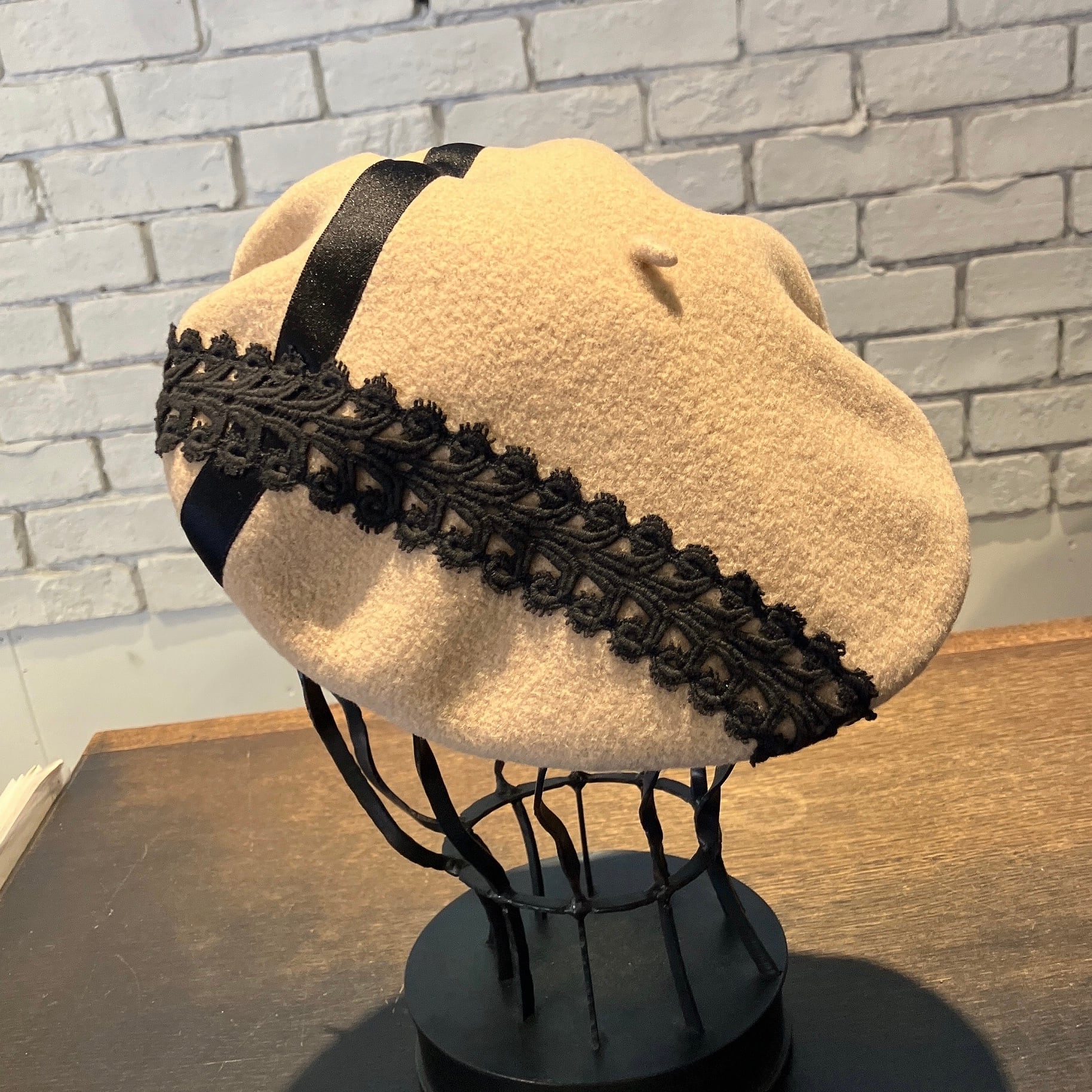 こちらのベレーは頭周り54cmほどで仕上げられています。