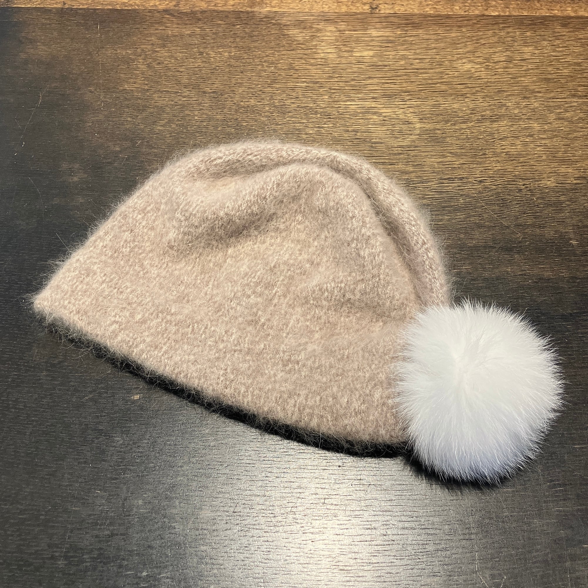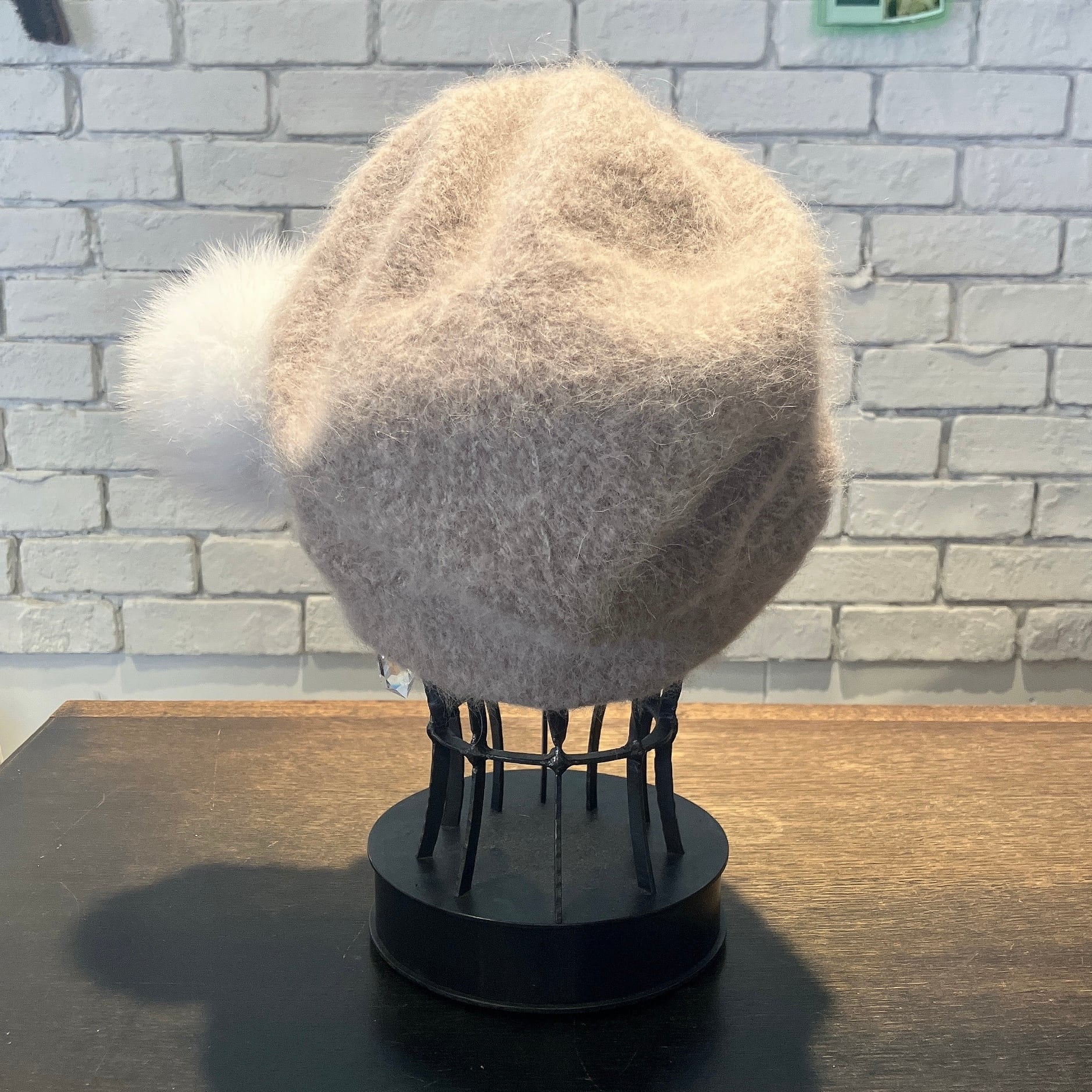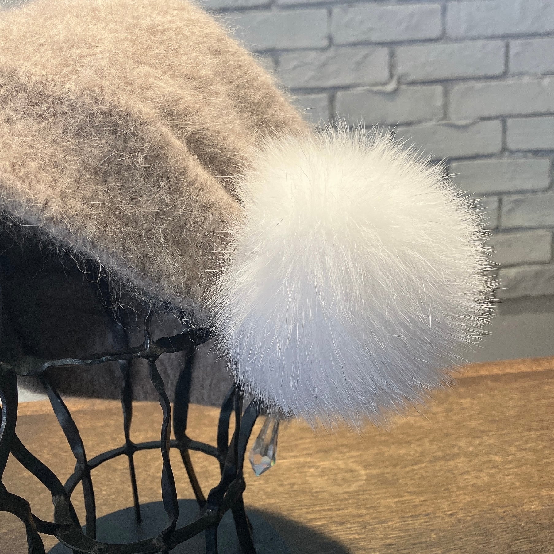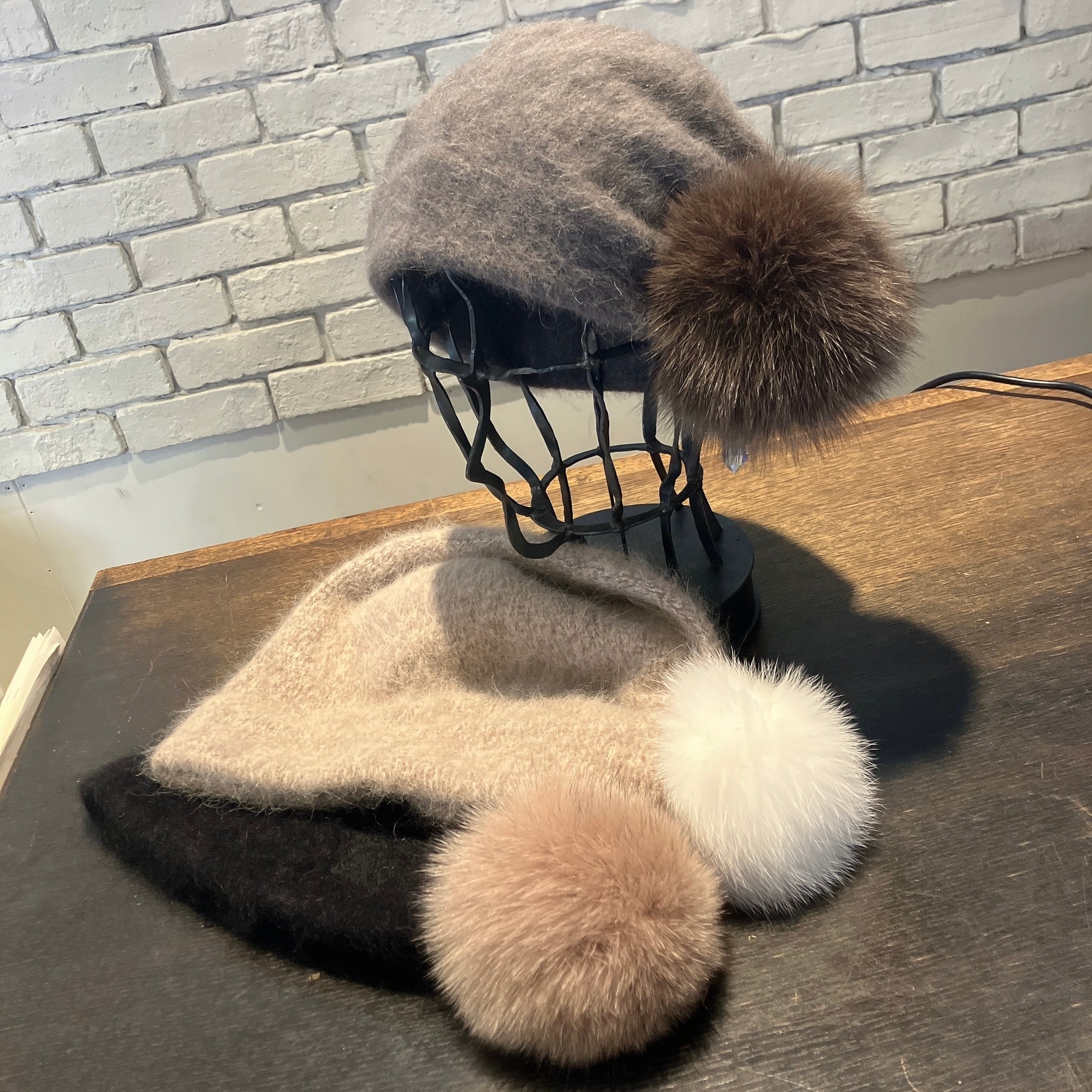 軽いかぶり心地のシングルニットにボリューミーなフォックスファーポンを飾り付け。ポンポンはブローチ仕様なので、その日の気分に合わせてお好みのシルエットをお楽しみください。