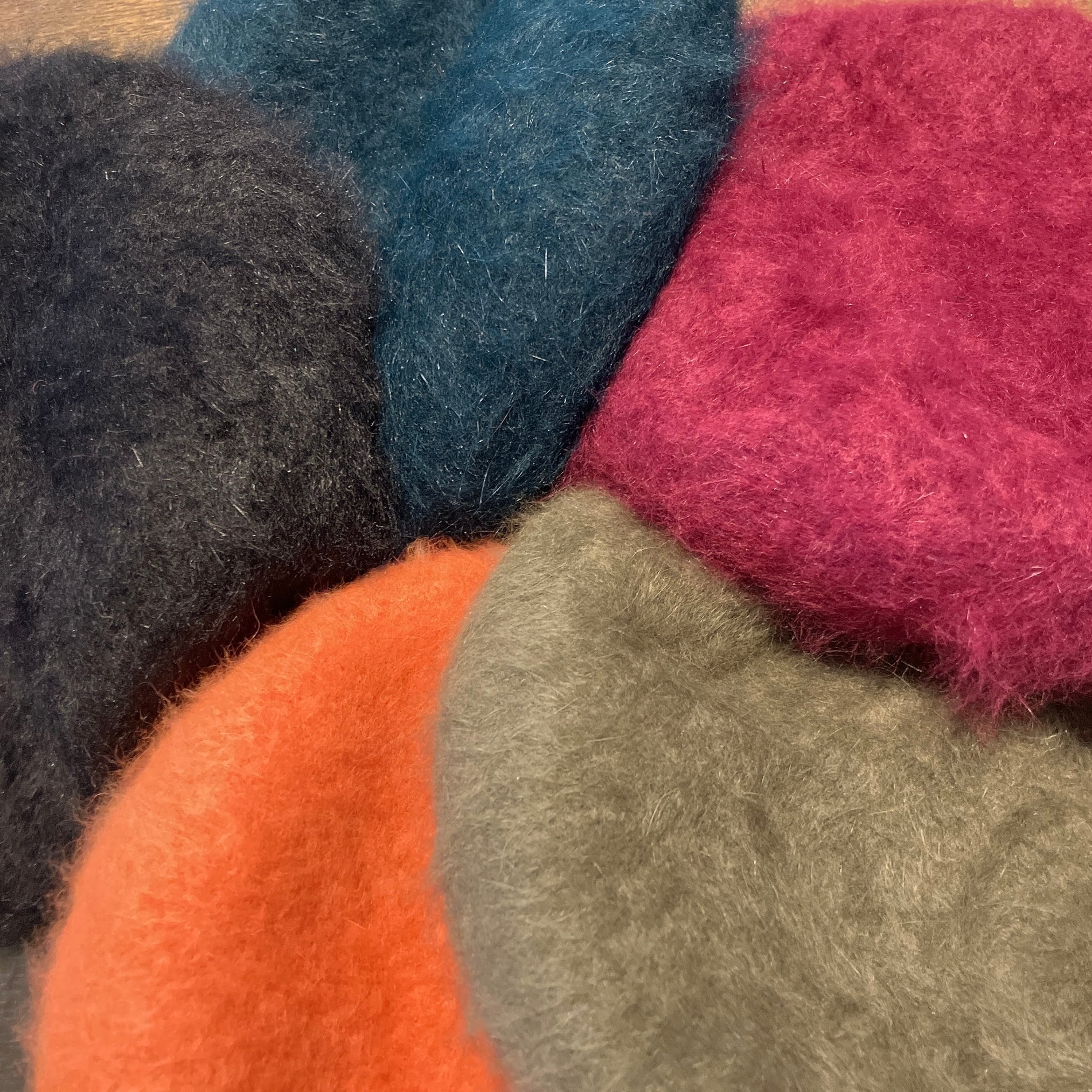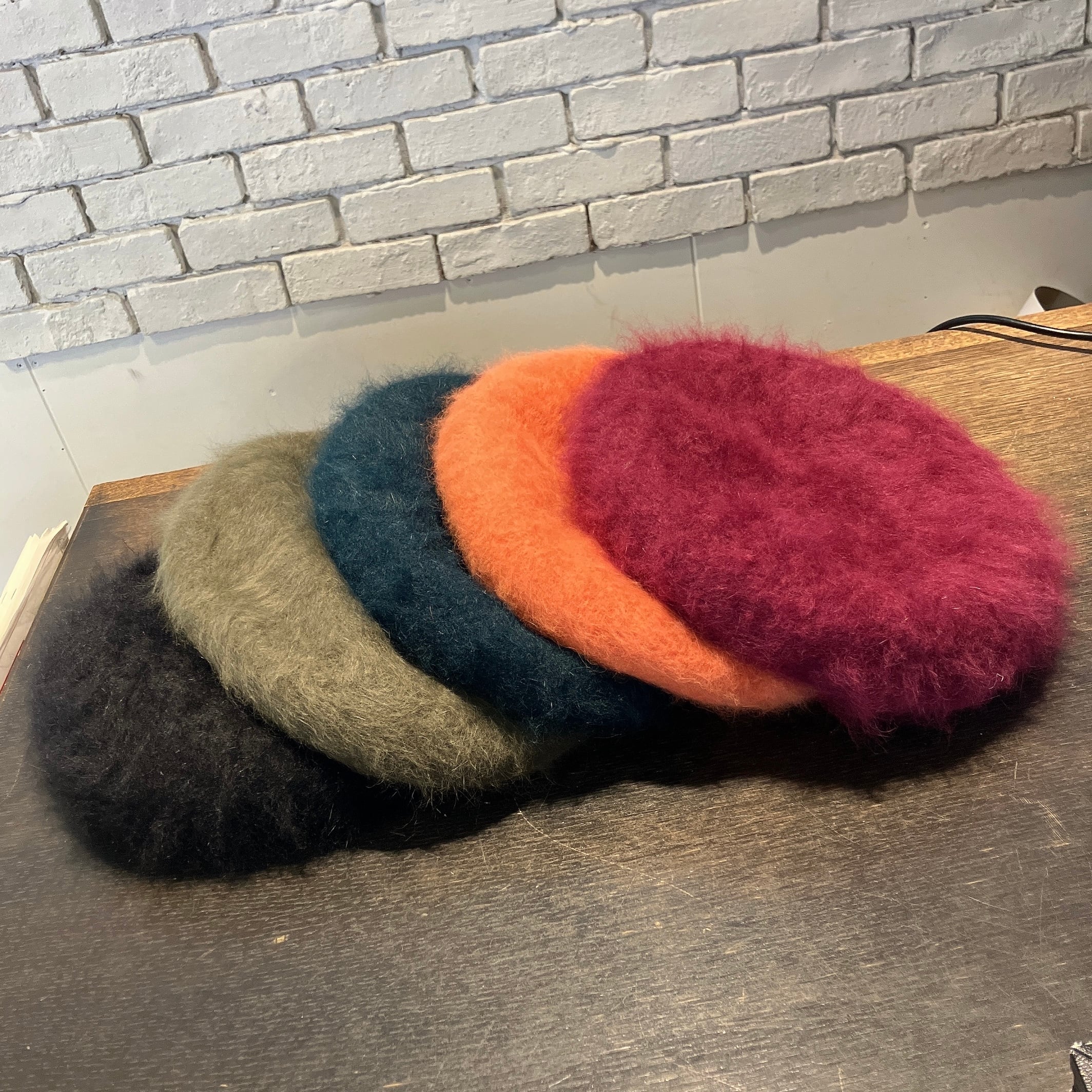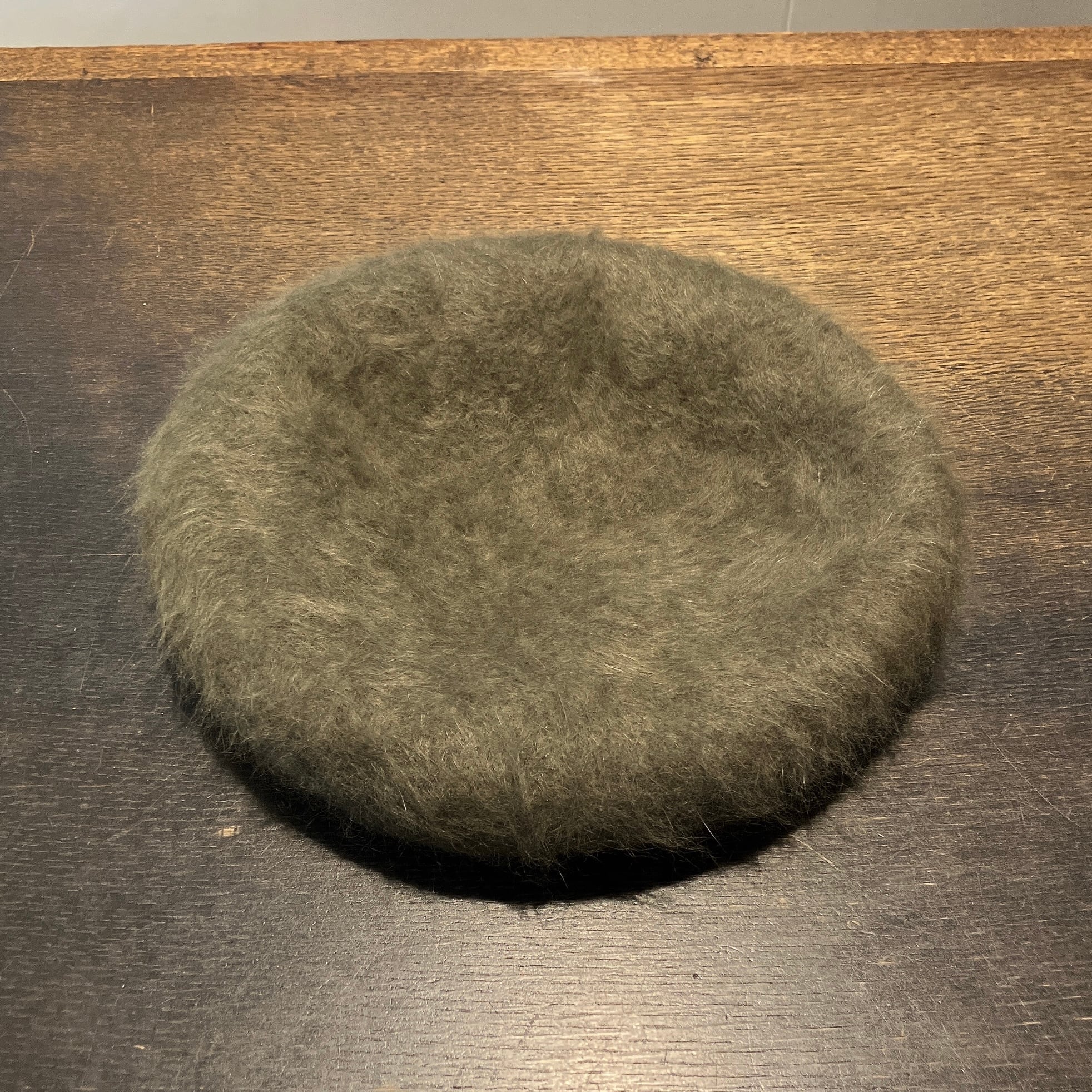 毛足の長いふわふわのアンゴラ生地で制作されたベレー。
