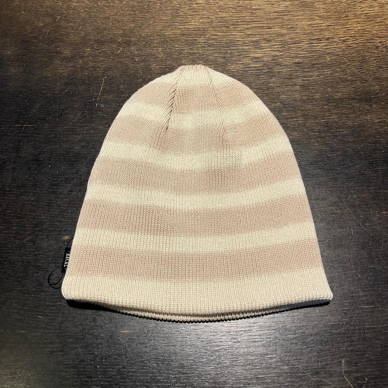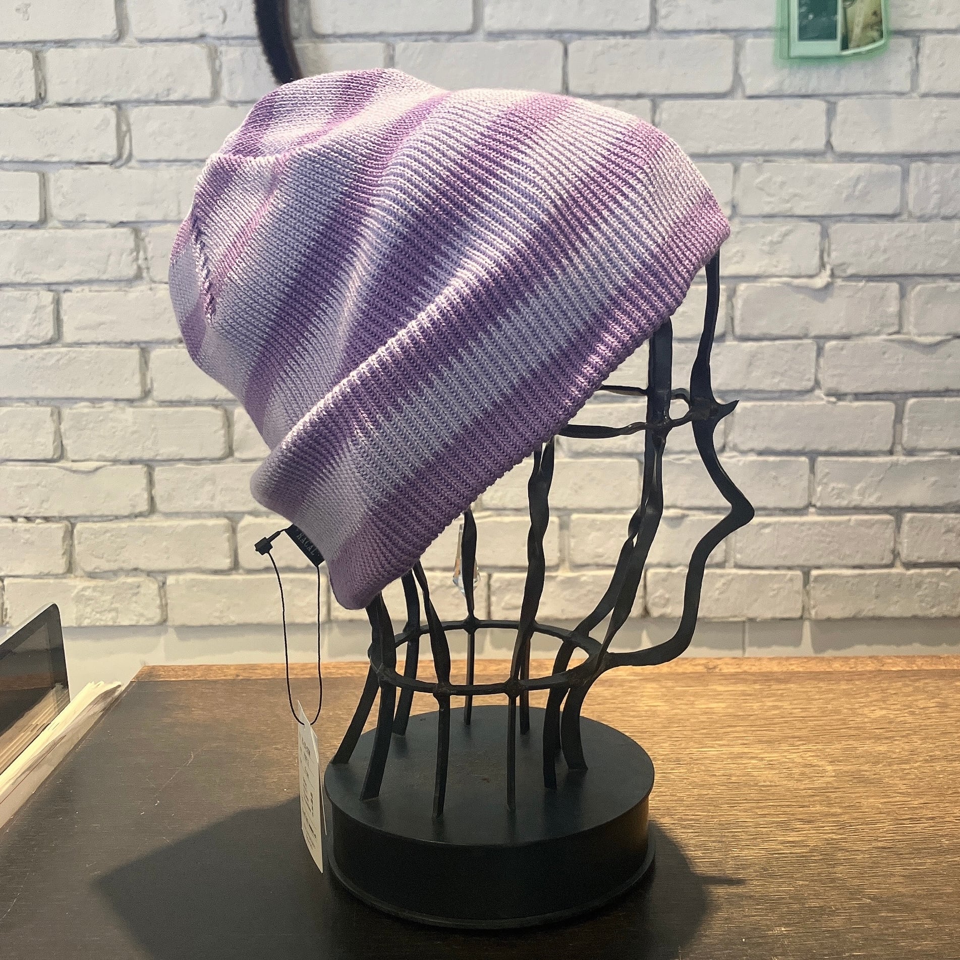 季節を問わず使える、程良い厚みでさらっとした質感。頭をしっかり包み込みますが締め付け感の少ないニットです。