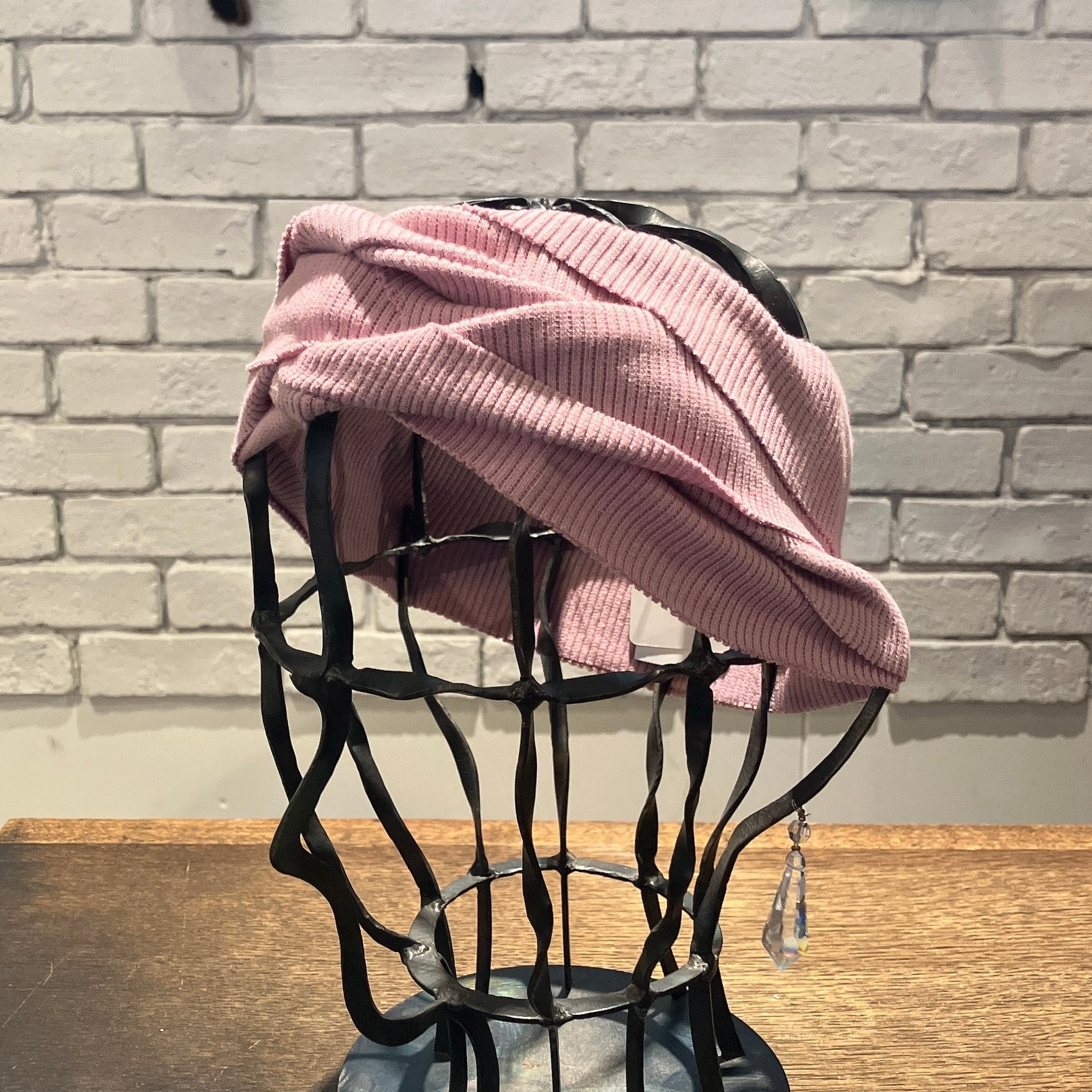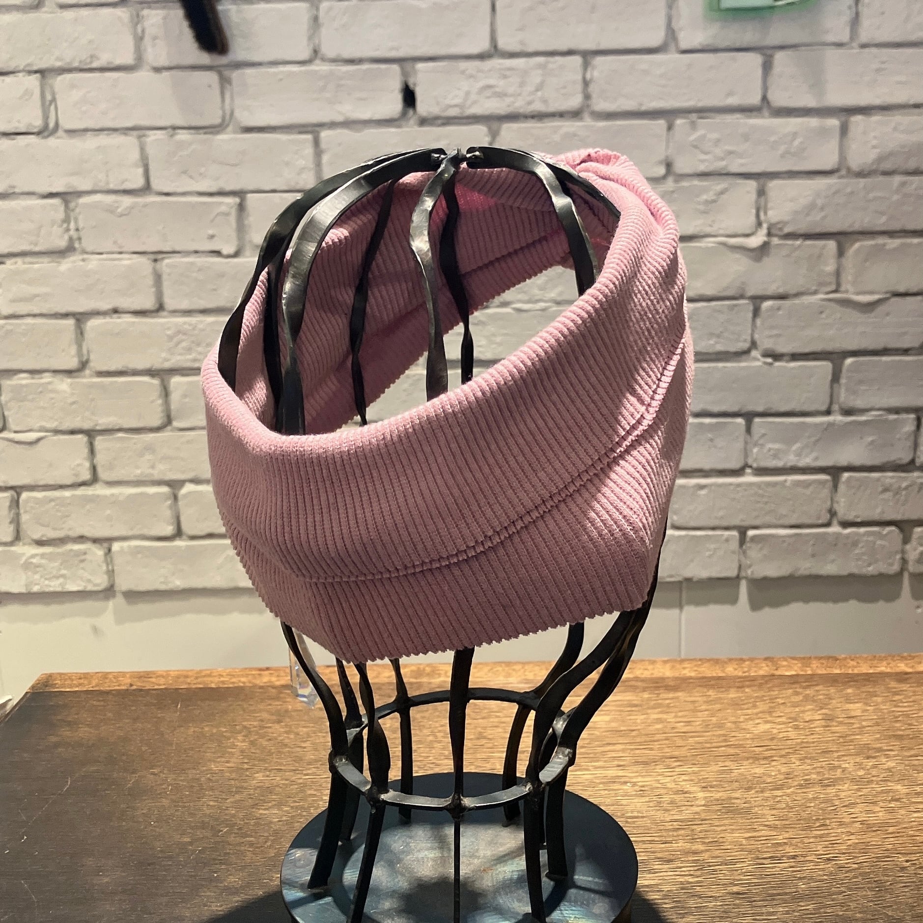 縫い目が無く布端も敢えて裁ちっぱなしで仕上られ、頭をしっかりホールド。使うごとに頭に柔らかく馴染んでいきます。