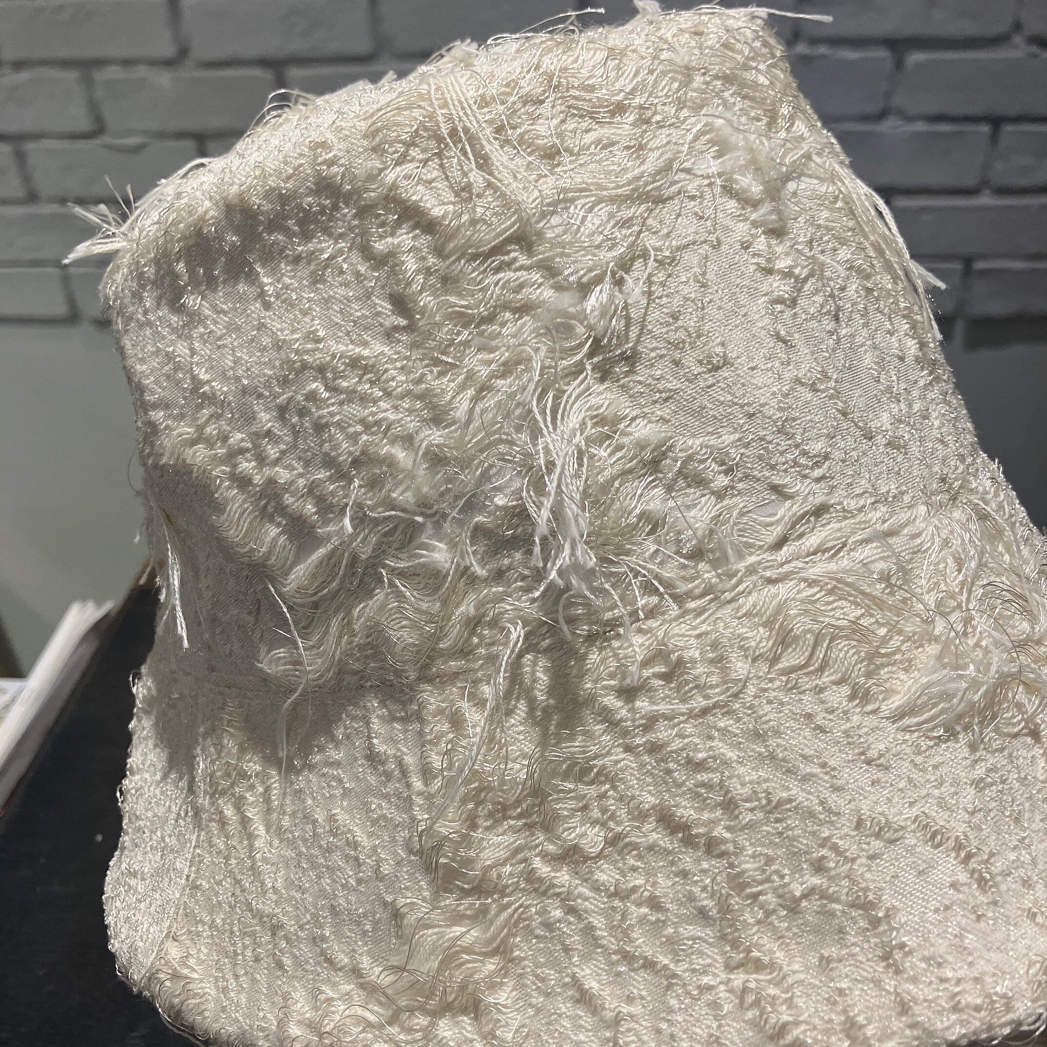 こちらはほつれたような変則ジャガード生地を使用。同シリーズの中では薄手の生地なので、例年よりも更にシャープなシルエットに仕上がっています。高級感と存在感のある生地で様々なファッションのアクセントに。