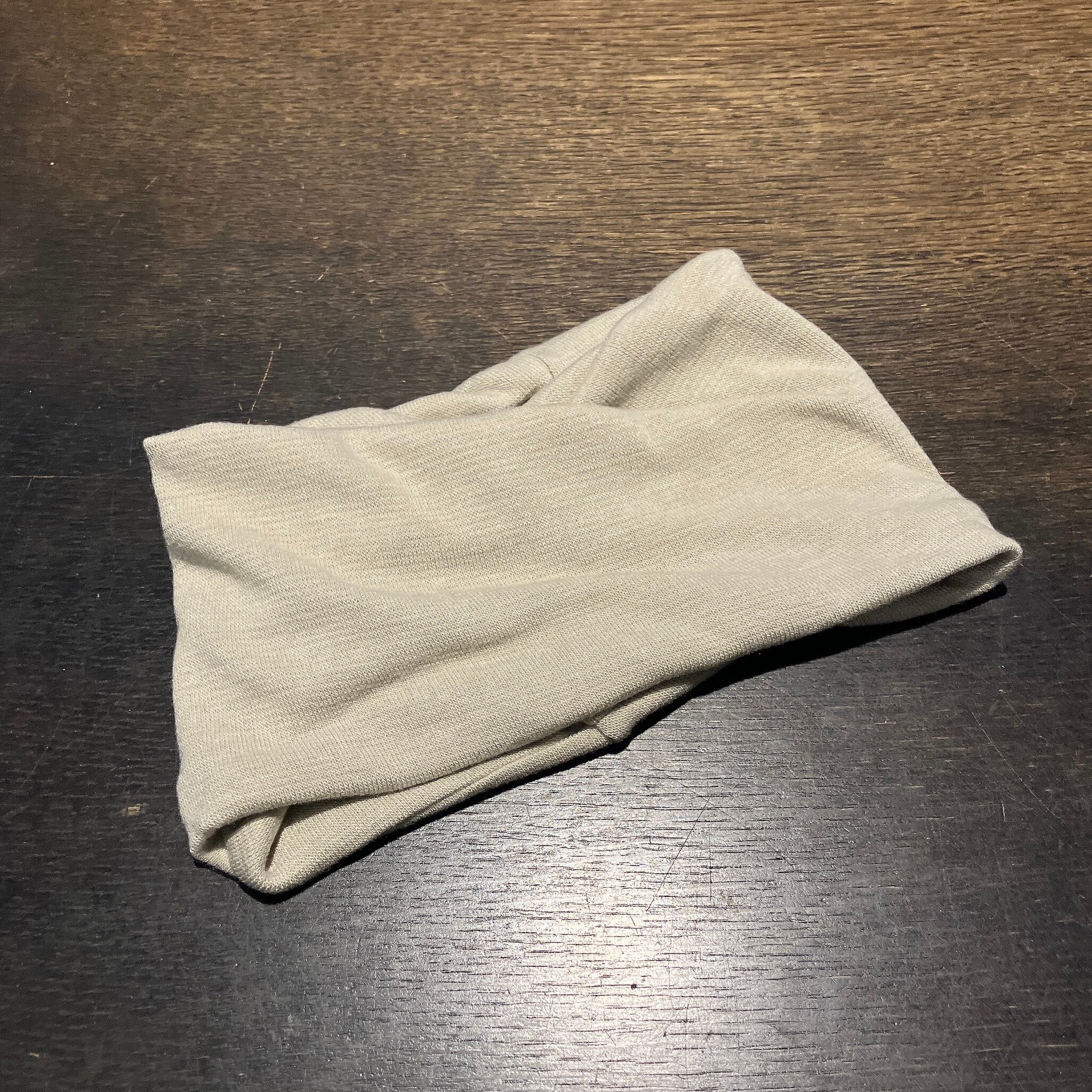 幅広のヘアバンドにドレープを入れ、柔らかな動きのあるシルエットに仕上げました。頭にピタッとフィットするので、髪をまとめたいときにも◎。