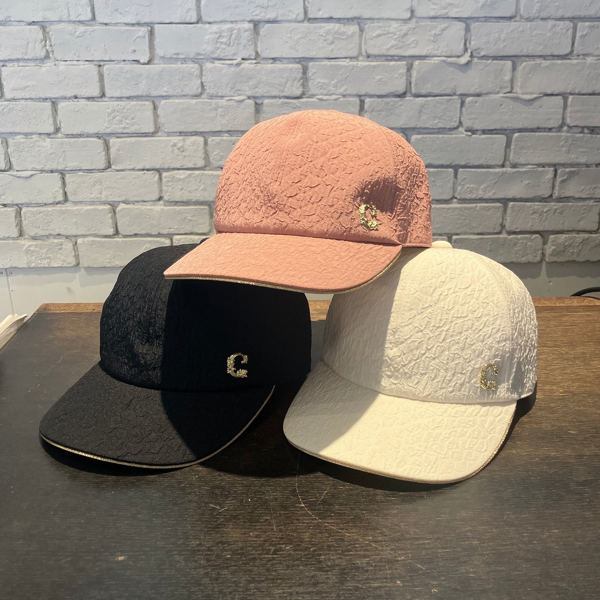 シンプルなデザインのキャップ。