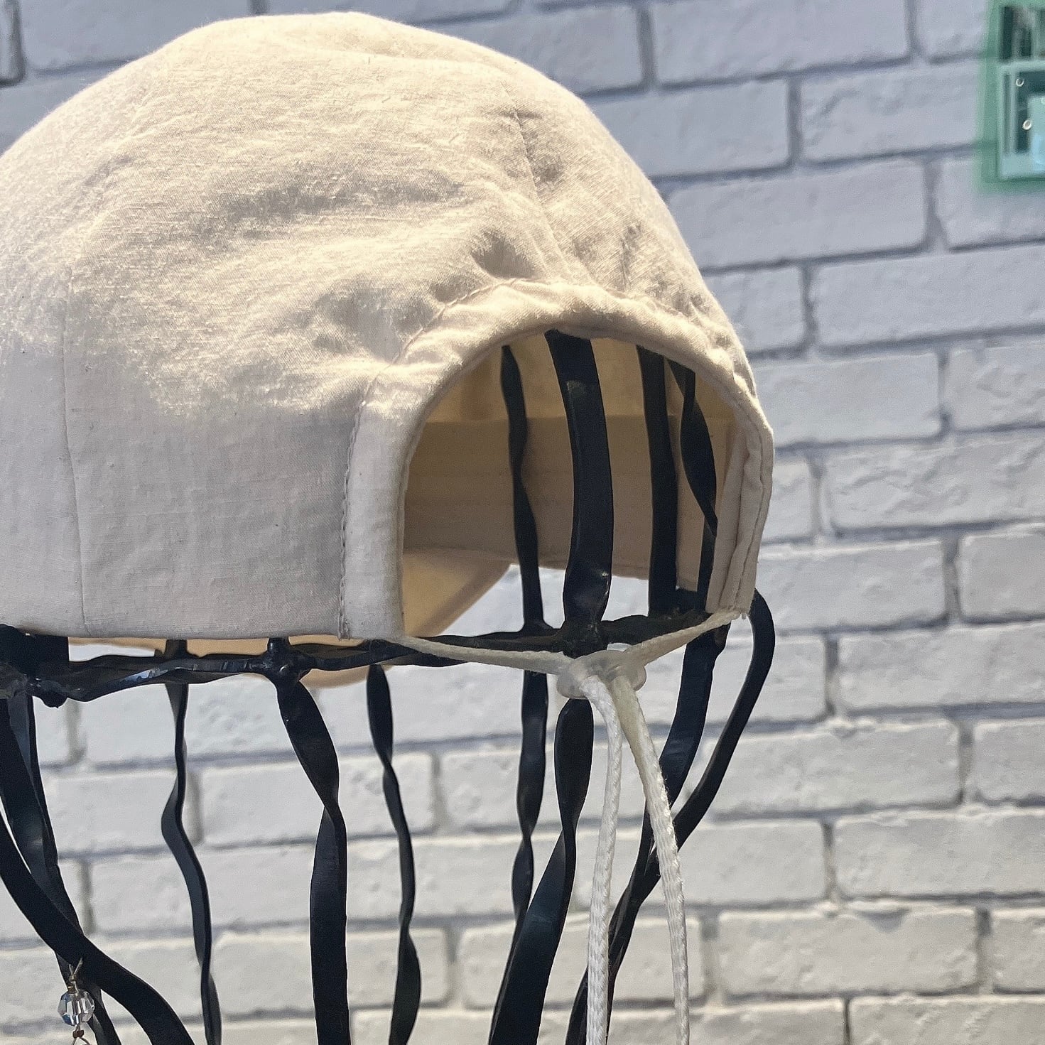 ベルトではなく紐とシリコンパーツでサイズ調整する変わり種キャップ。