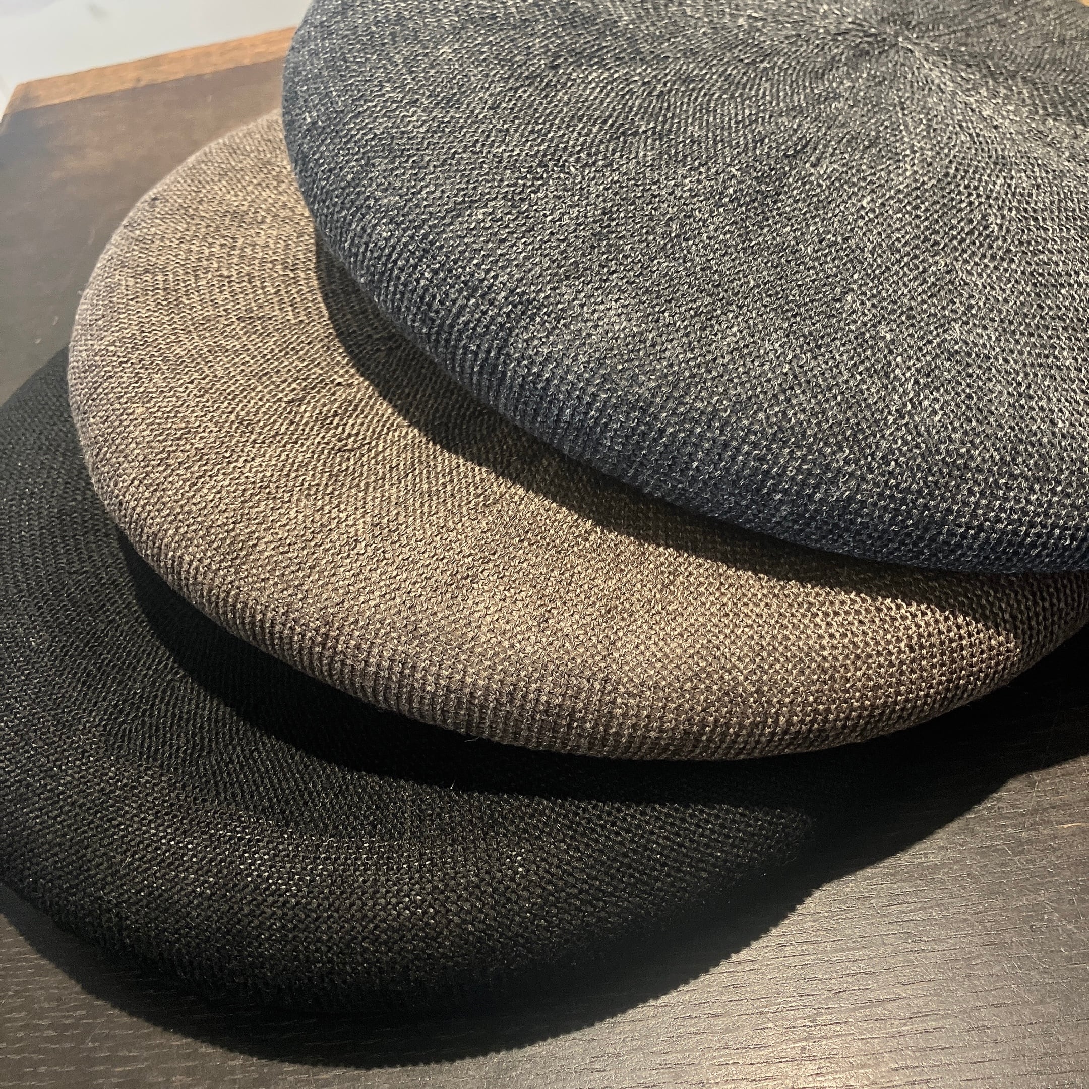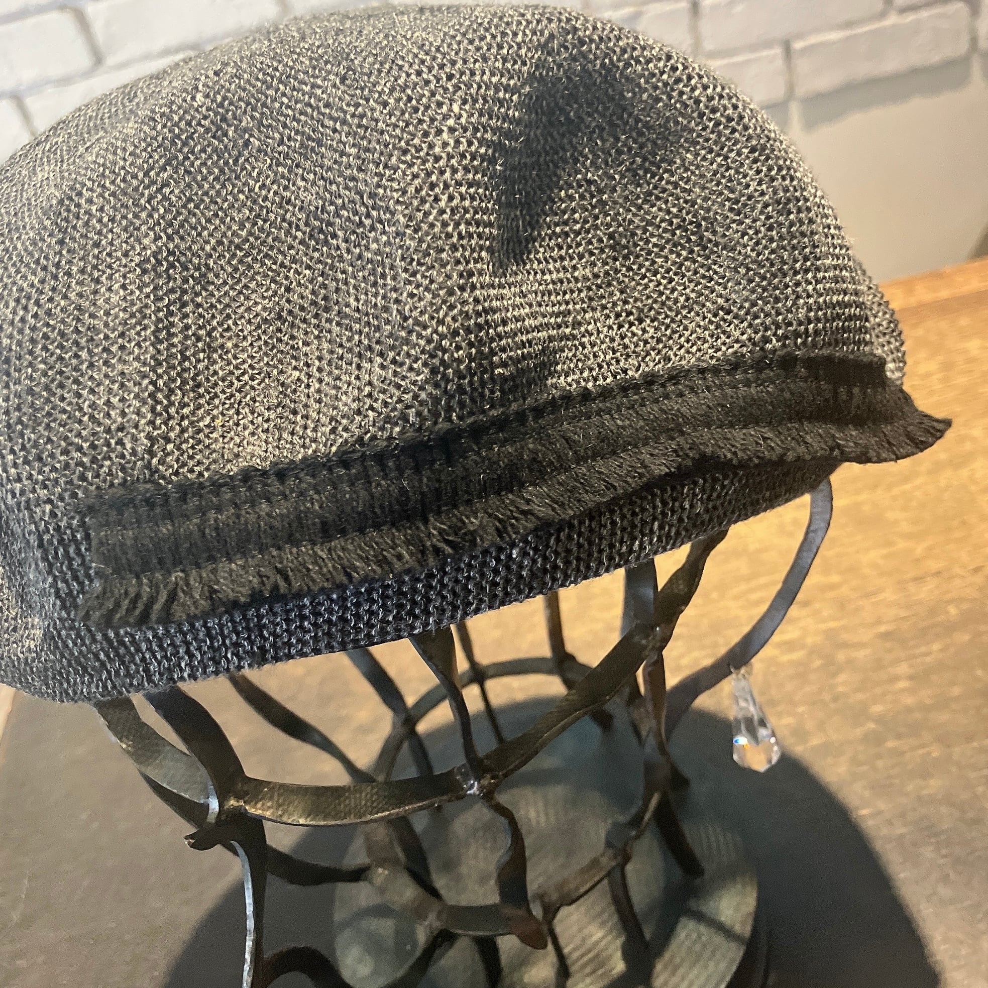 シャリ感のある麻×ポリエステル糸をセレクト。通気性も良く、見た目にもかぶっても爽やかな仕上がりに。