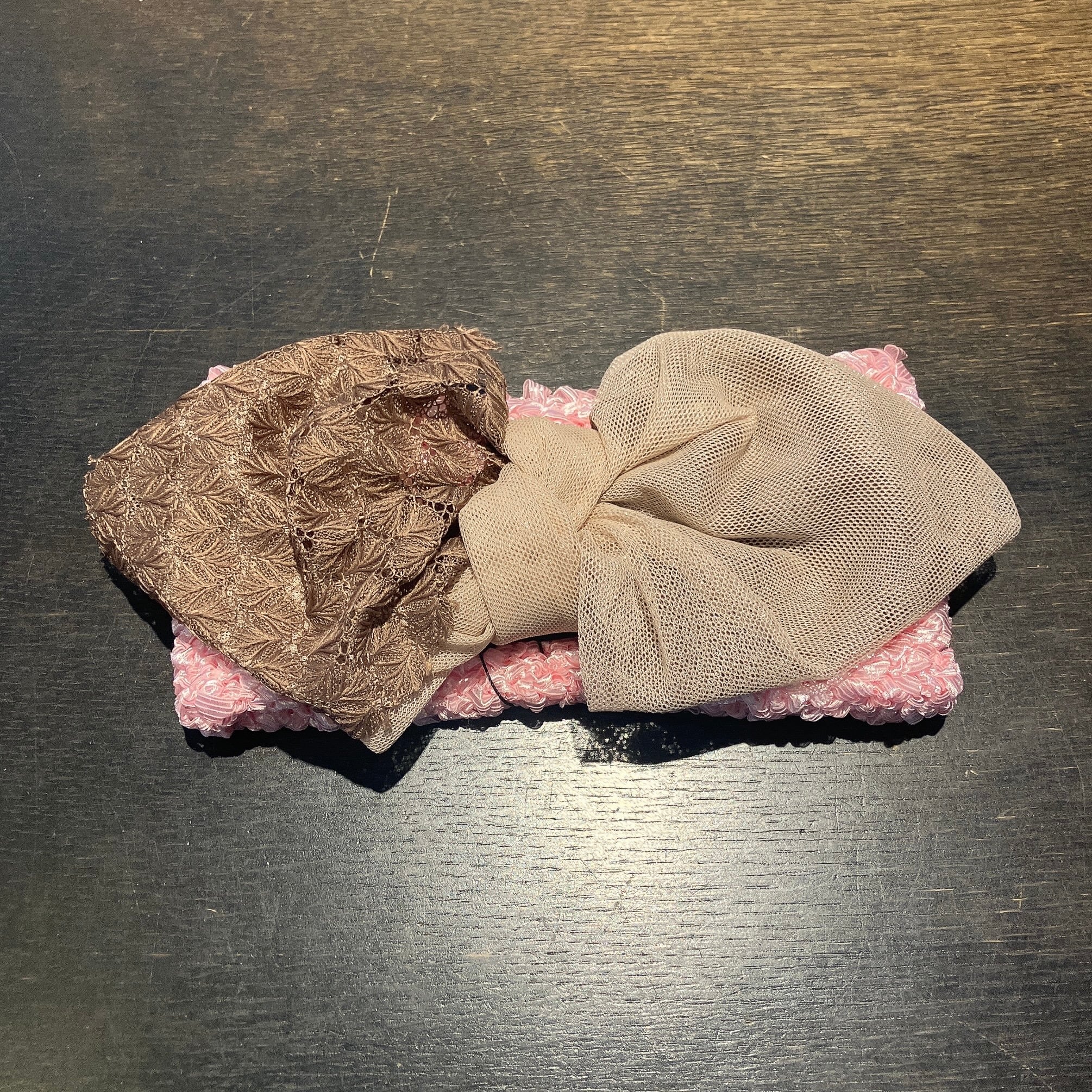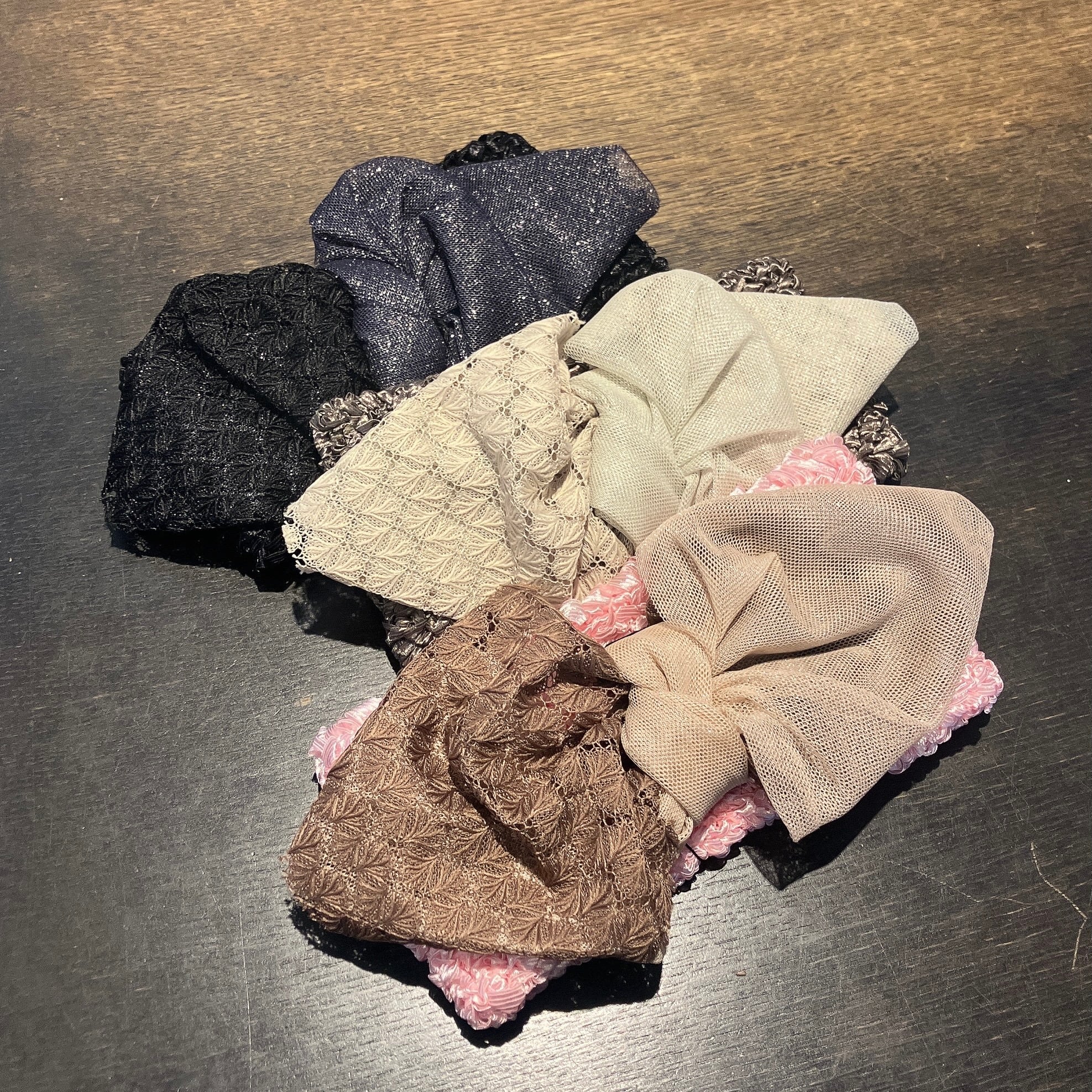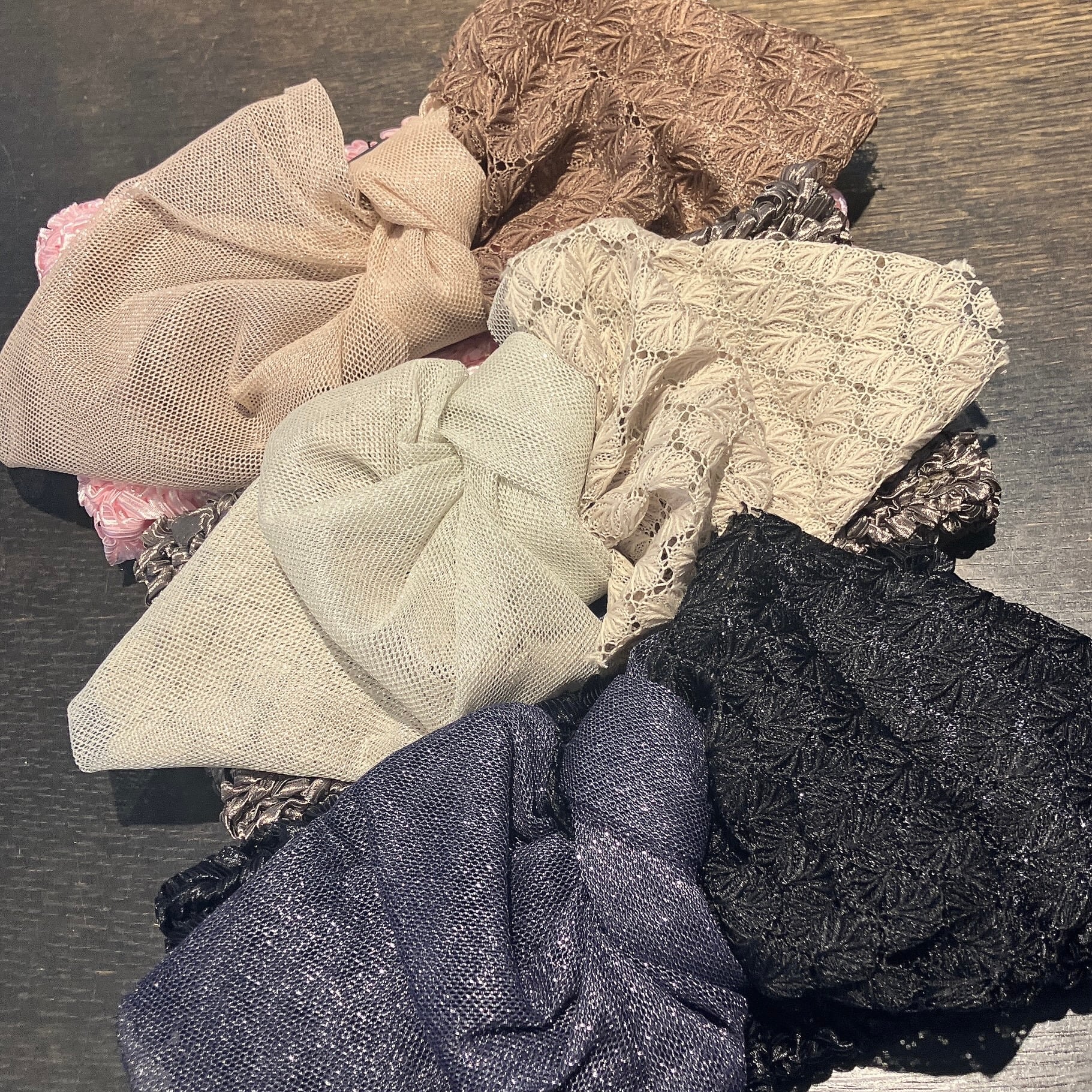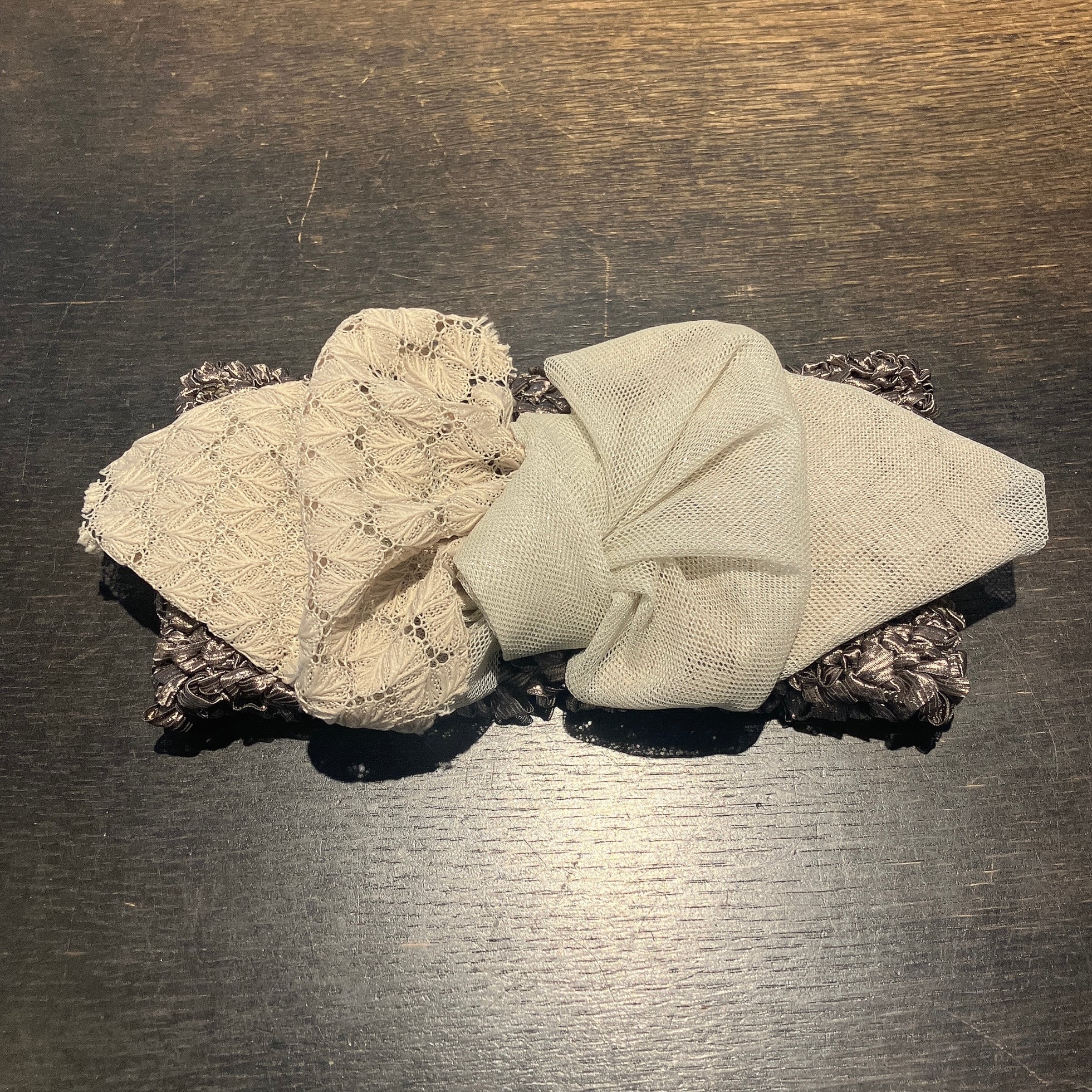リボン部分はレースとメッシュ素材を組み合わせ。配色のバランスが絶妙で、まとまりのある表情に。