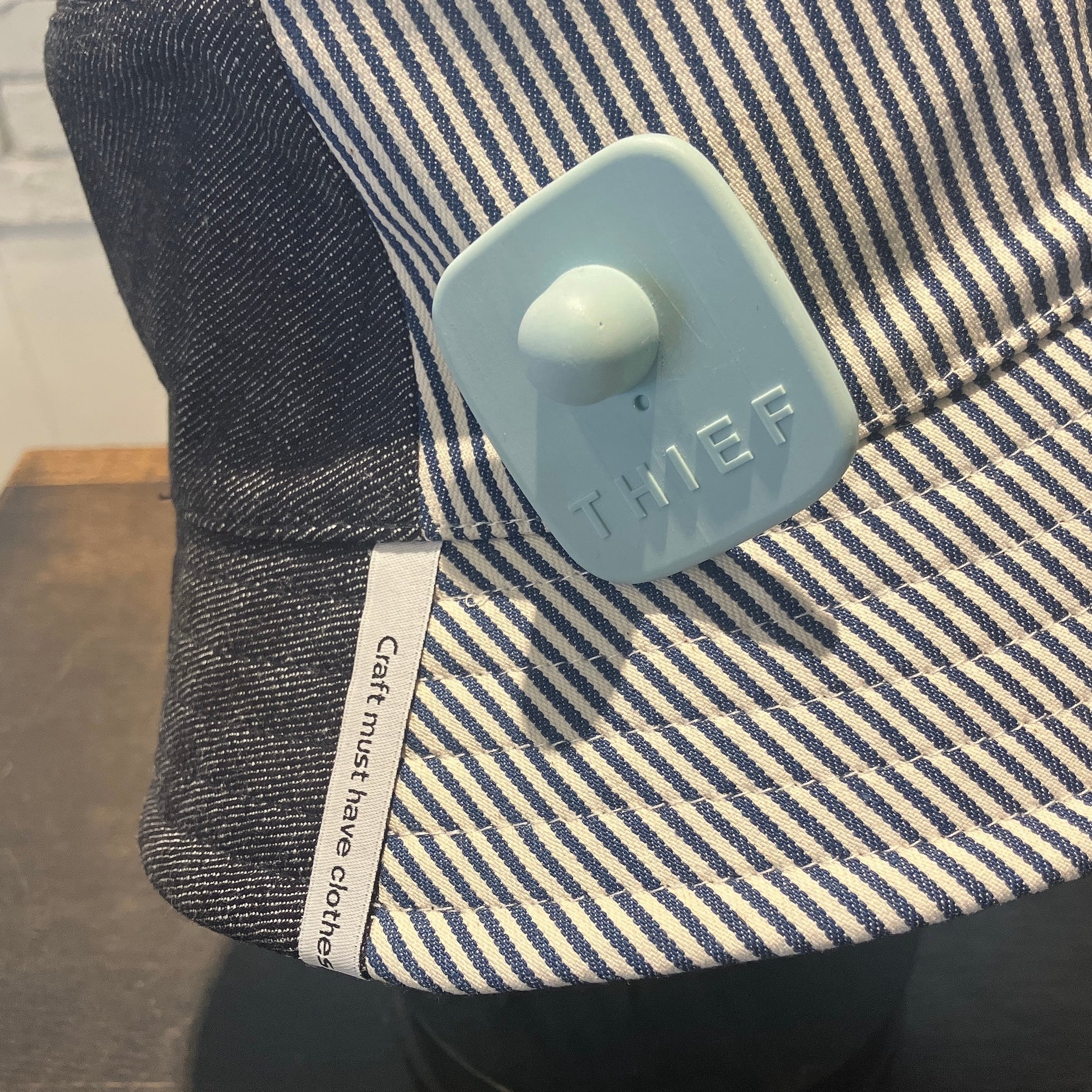 盗難防止タグをモチーフにした飾りは取り外し可能です。