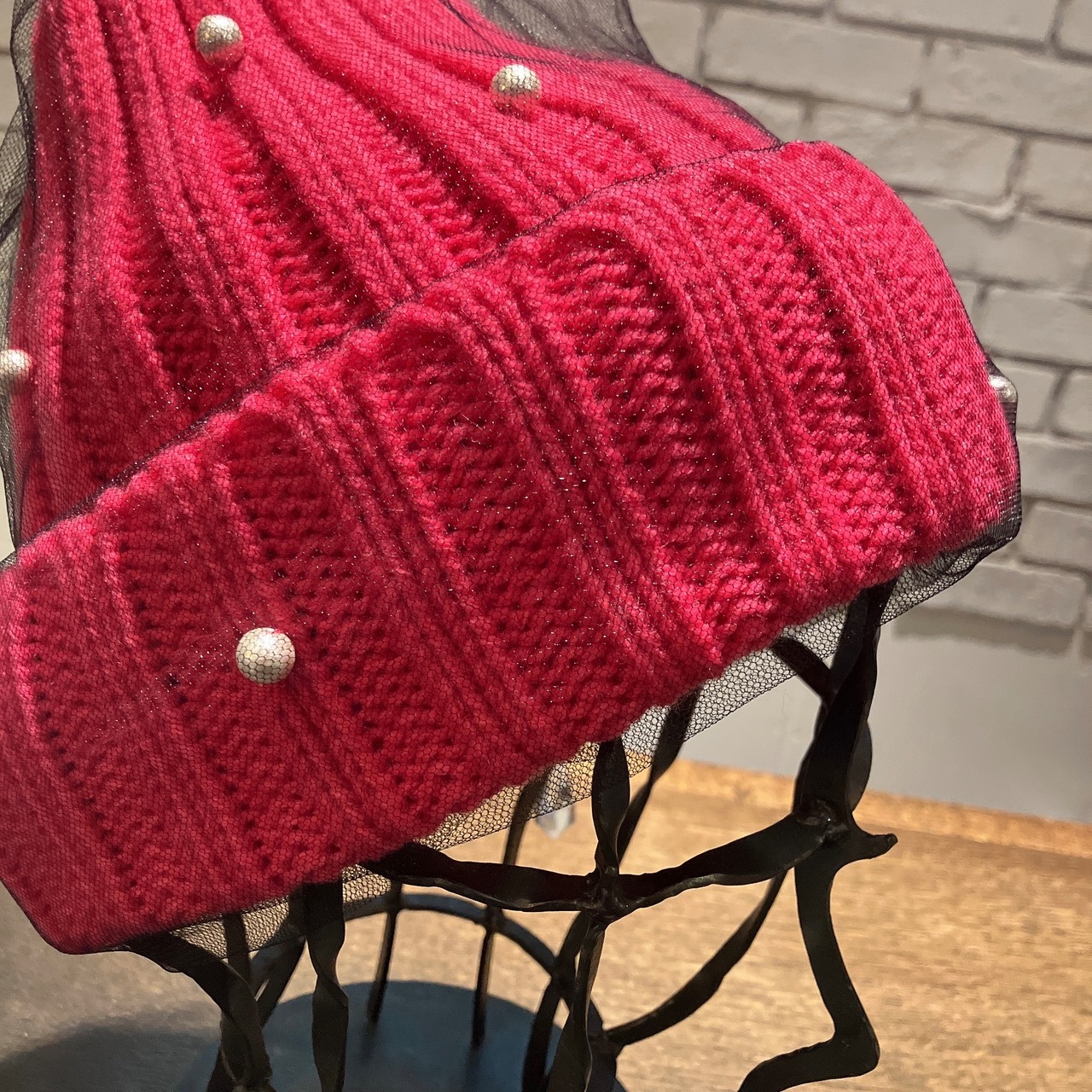 リブ編みのシンプルなニットにパールをトッピング。さらにふんわりチュールをかぶせて、可愛く上品な表情に仕上げました。チュールは自分の好みでたくさん出したり馴染ませたり出来るので、気分に合わせて甘さの調節が可能。女性を釘付けにするパーツを詰め合わせた、存在感たっぷりのアイテムです。