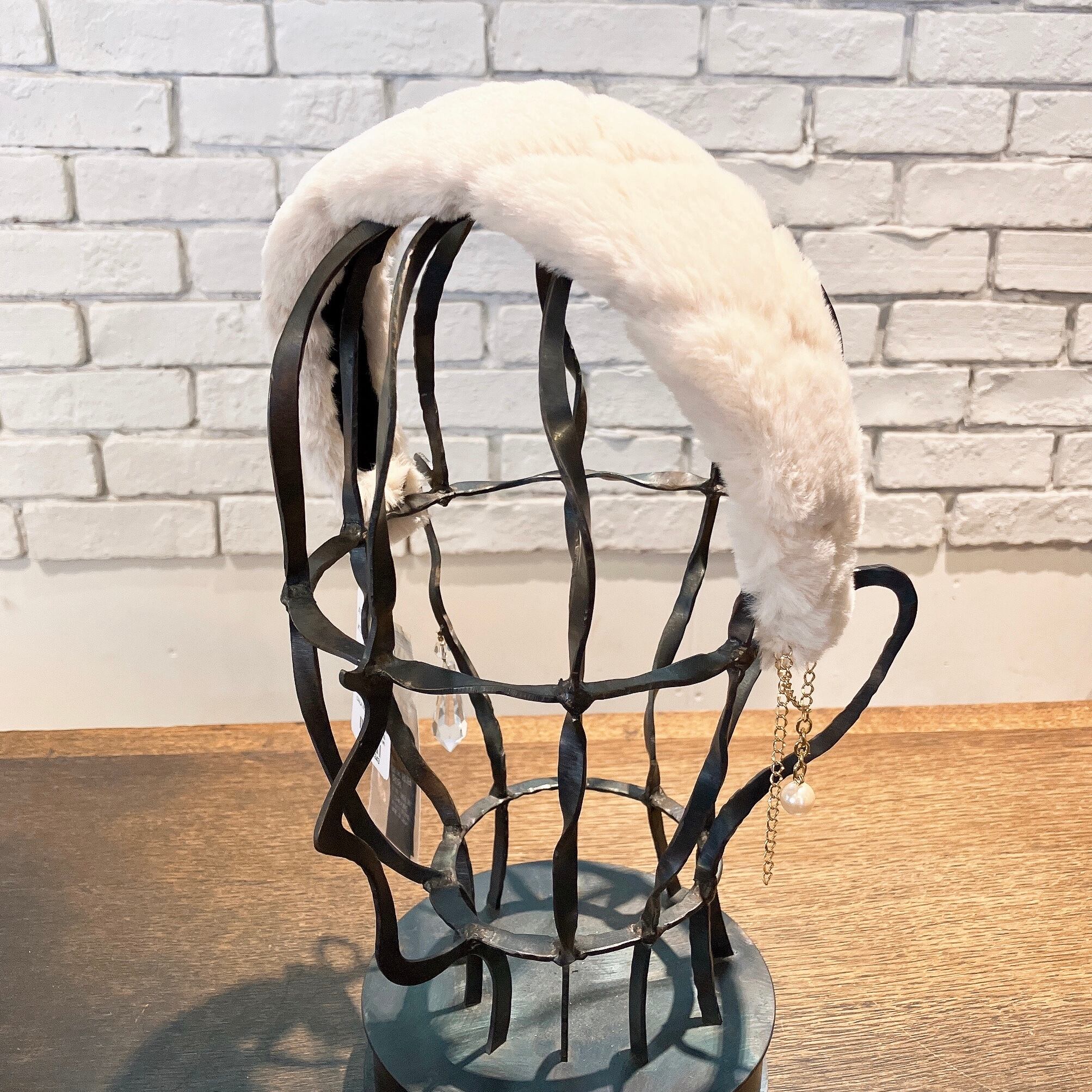 ファーで仕立てたカチューシャ。