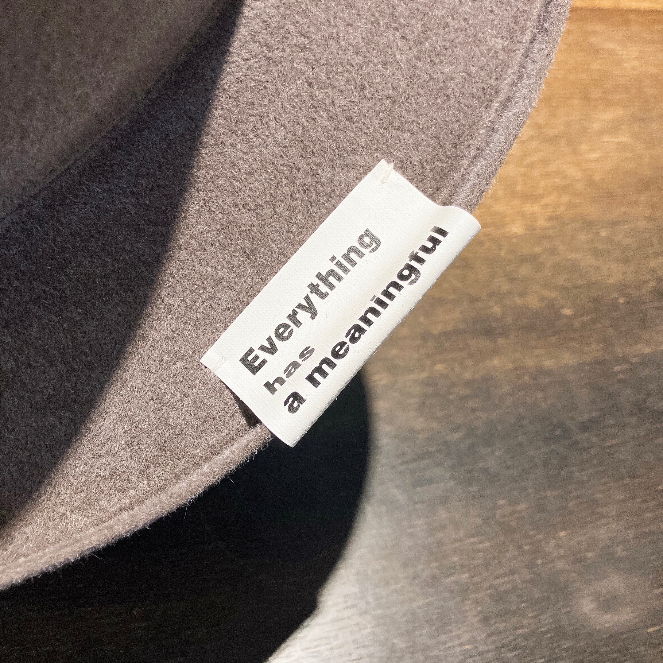 背の高いクラウン×反り上がりが印象的なブリムは、ホンブルグ型ならではのシルエット。ブリム先はあえてパイピングを施さず、スマートな表情に仕上げました。シーズンテーマである「Everyday things」をグラフィティ風にデザインし、サイドにプリント。ラビットファーの風合いが大人っぽく、コーディネートに品格をもたらしてくれるアイテムです。